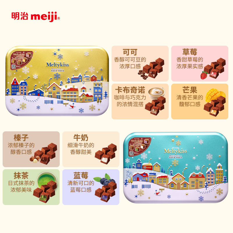 Meiji Meiji Snow Kiss Chocolate Gift Boxed 180g Iron Boxed Golden and Blue Pots for Girls' Birthday Festival Gift