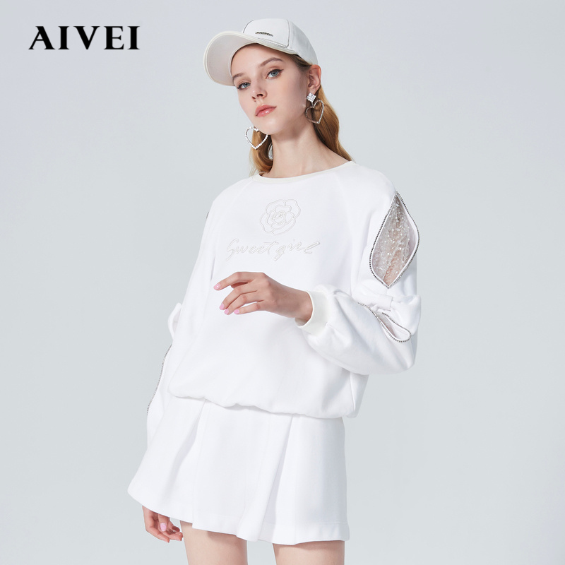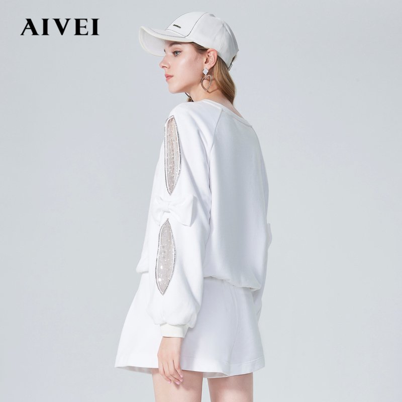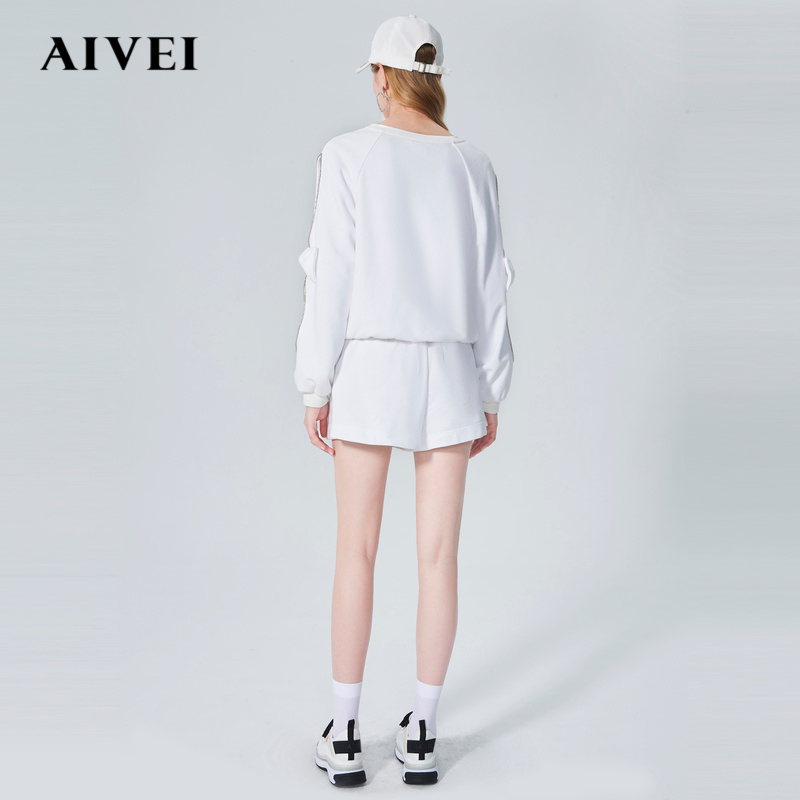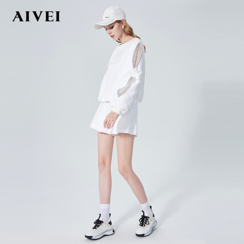 AIVEI Hingga Ai Wei 2023 Autumn Hollowed-out Splicing Sweater Shorts Casual Sports Suit P016S063-Taobao