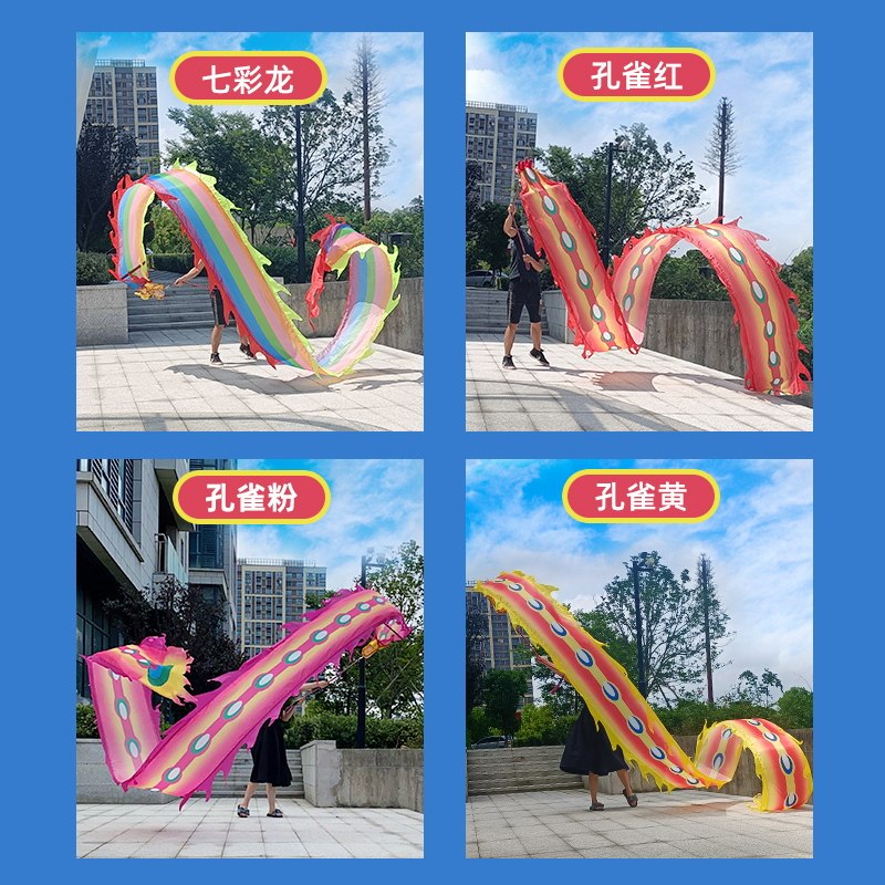 Square dance dragon color with fitness silk satin floating with adult thrower dragon with dragon head color with dragon show performance props