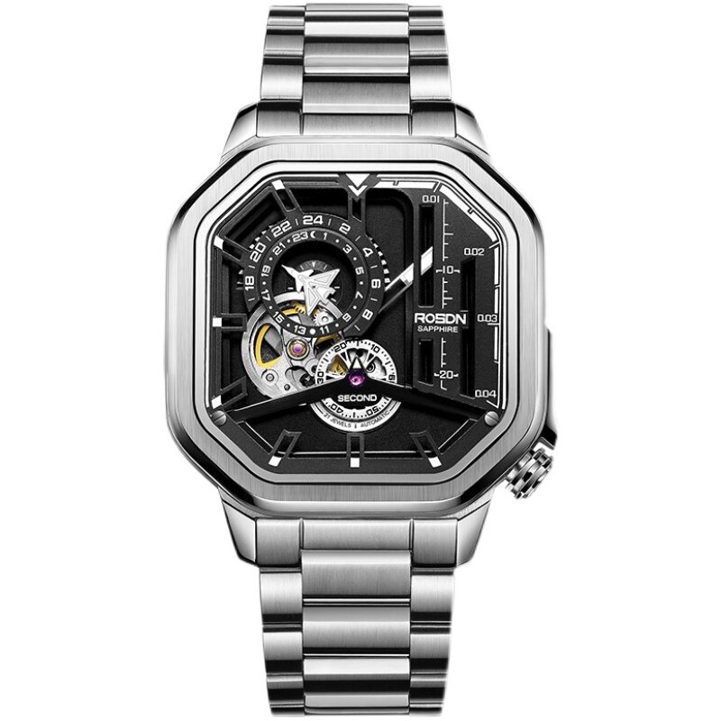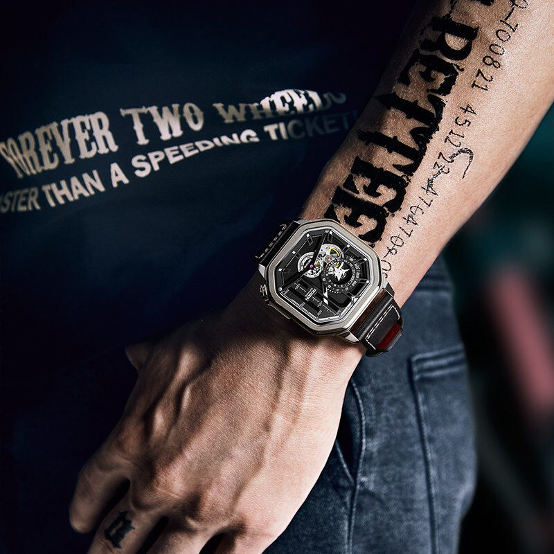 Lawston watch men's square automatic mechanical watch fashion trend cool hollow waterproof men's watch small silver