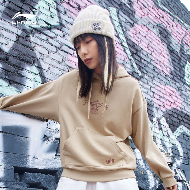 Li Ning anti-wooded BADFIVE clothing lady sleeve head long sleeves with cap loose women's clothing blouses spring sportswear