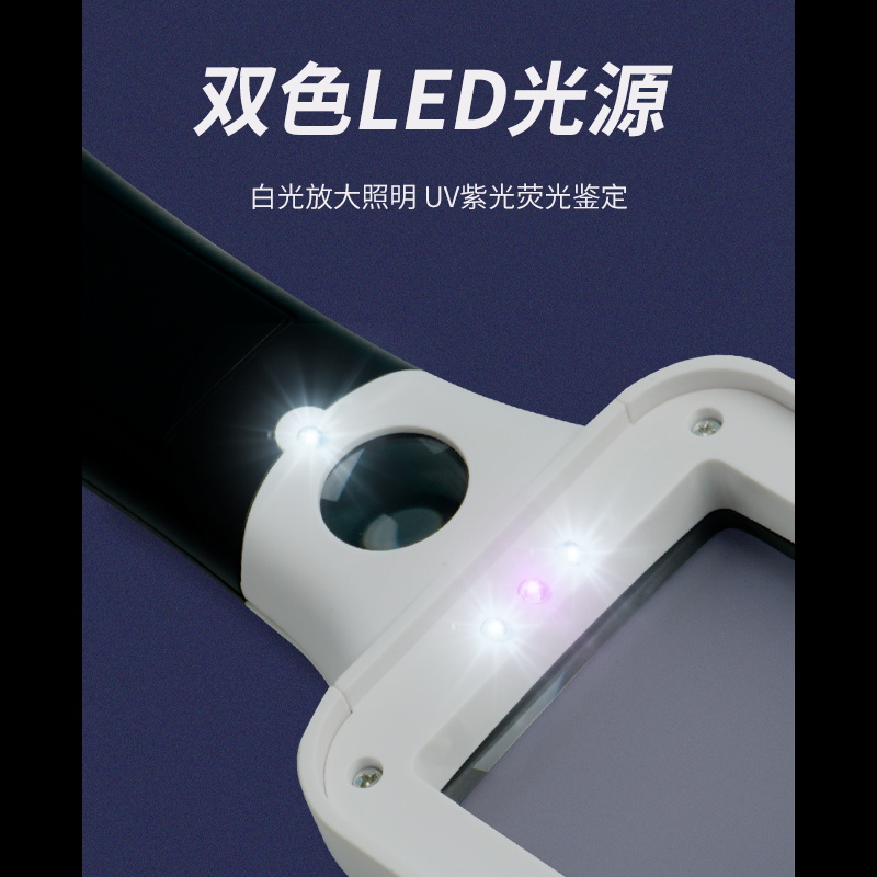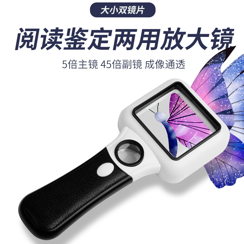 Byist magnifier with lamp led high-definition double handheld PU leather handle white purple light old man reading collection-Taobao