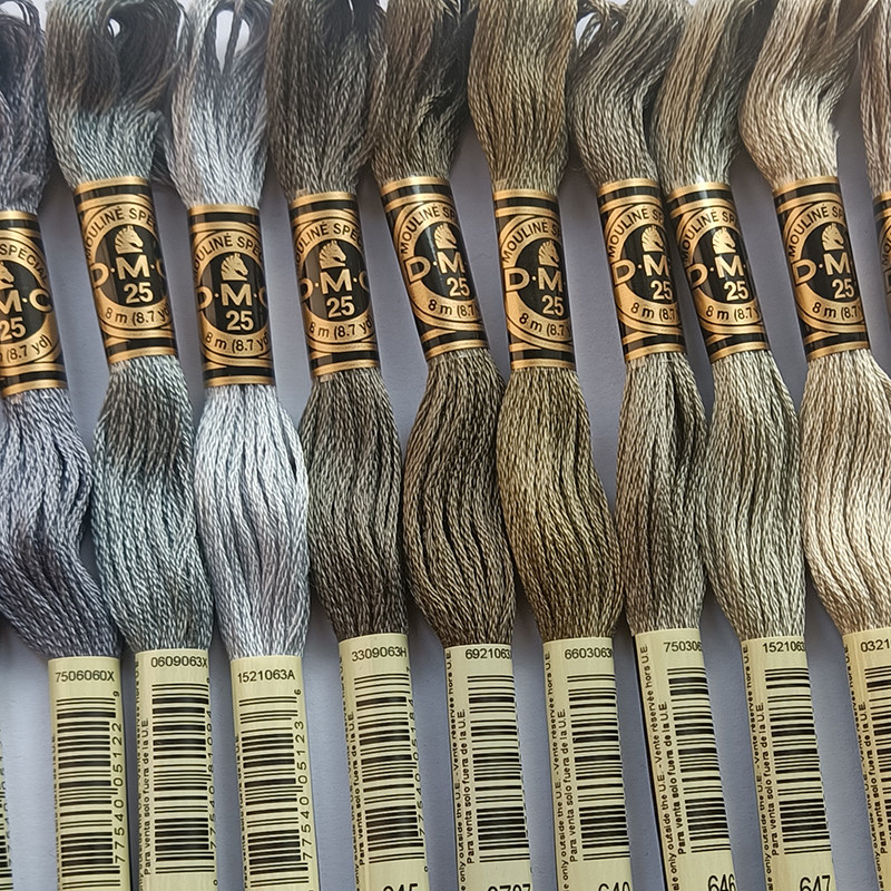 French DMC cross stitch thread No. 25 cotton thread 16 color gray line DMC embroidery thread embroidery thread European method embroidery thread