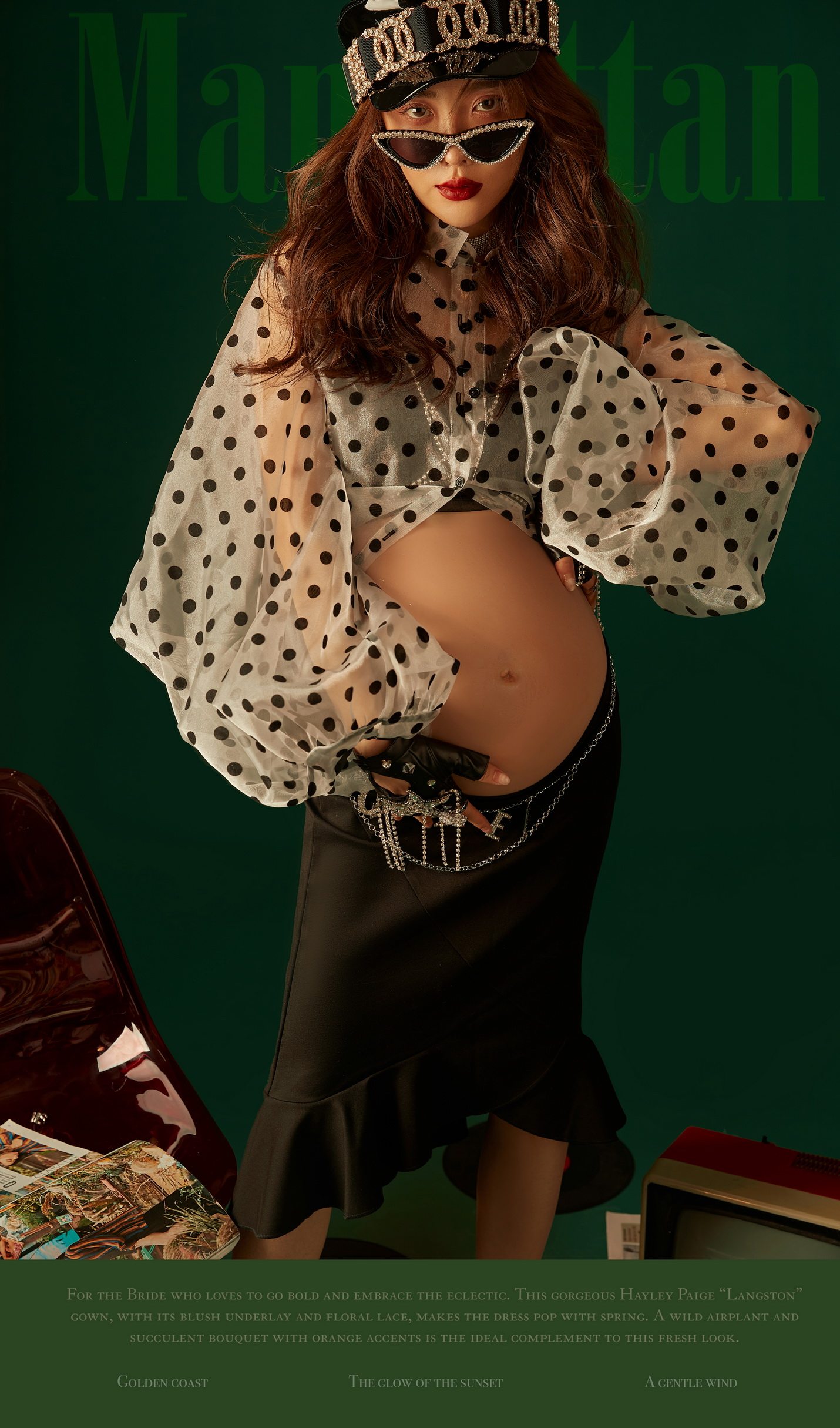 Studio pregnant woman photographs real clothes private mommy cute trend, fresh and lively sexy photography pregnant dress