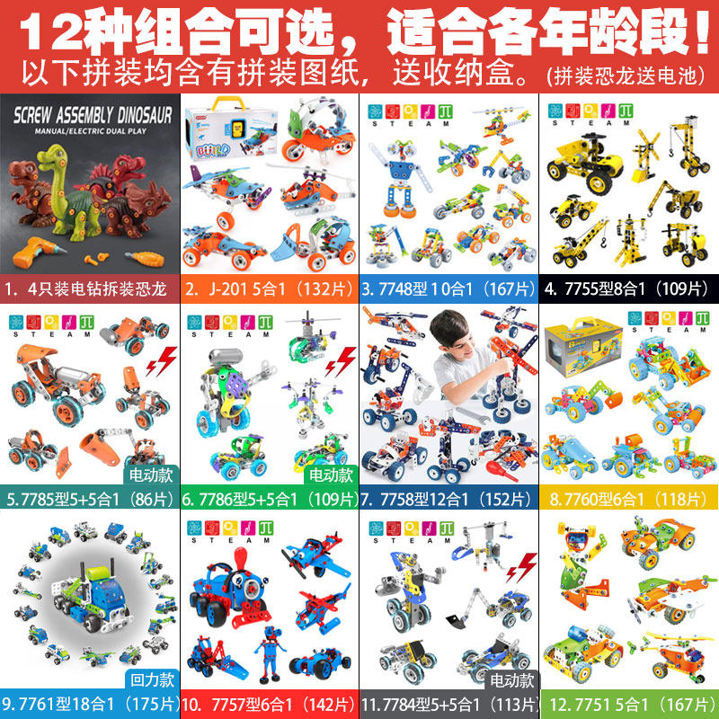 4 pieces of electric drill disassembly and assembly of dinosaurs - collection plus purchase free J-201 orange blue 5 in 1 (132 pieces) collection plus purchase 7748 type 10 in 1 (167 pieces) collection plus purchase free 775