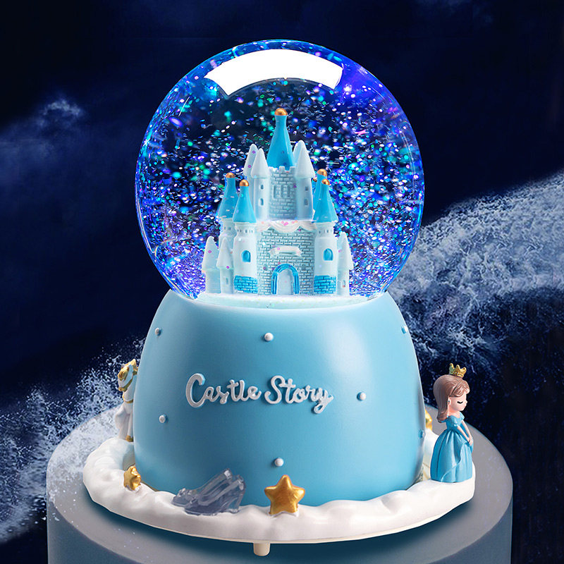 Large pink castle outside rotating snow lights large blue castle outside rotating snow lights large mermaid outer rotating snow lights out of the pink castle rotates snow lights outside the gift box blue castle