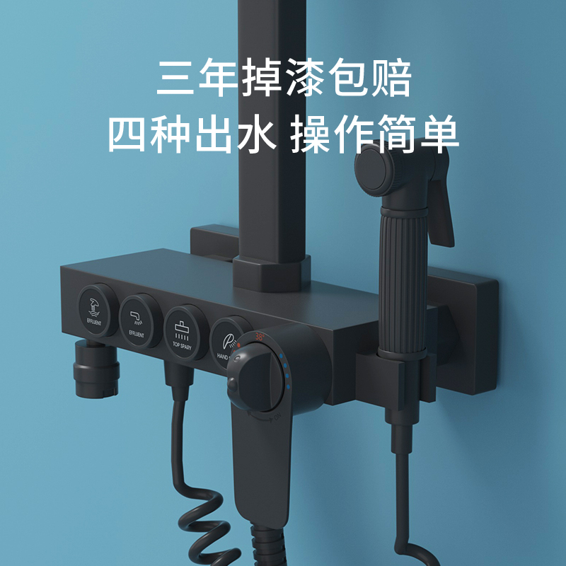 Frosted black button three-gear hot and cold version (square pole) frosted black button three-gear thermostatic version (square pole) frosted black button 4-gear hot and cold version (square pole) frosted black button 4-gear thermostatic version (square pole) frosted black number