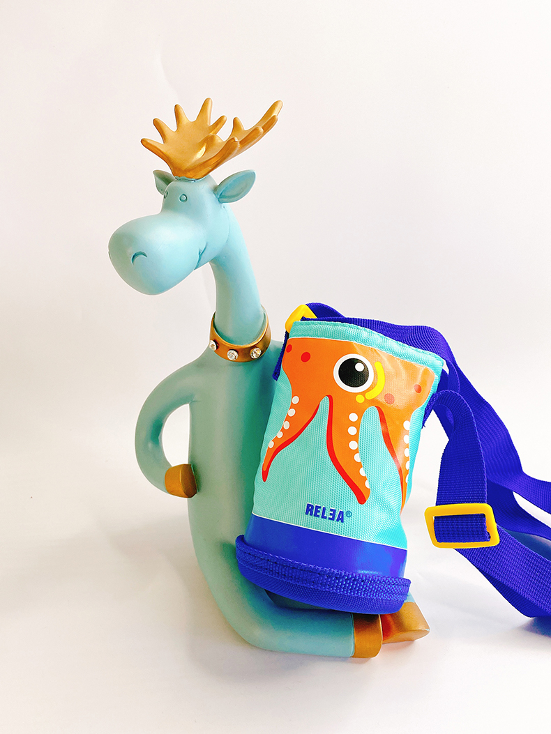 Children's students universal cute cartoon portable water bottle cup protection thermos cup set cup bag messenger baby bag anti-fall