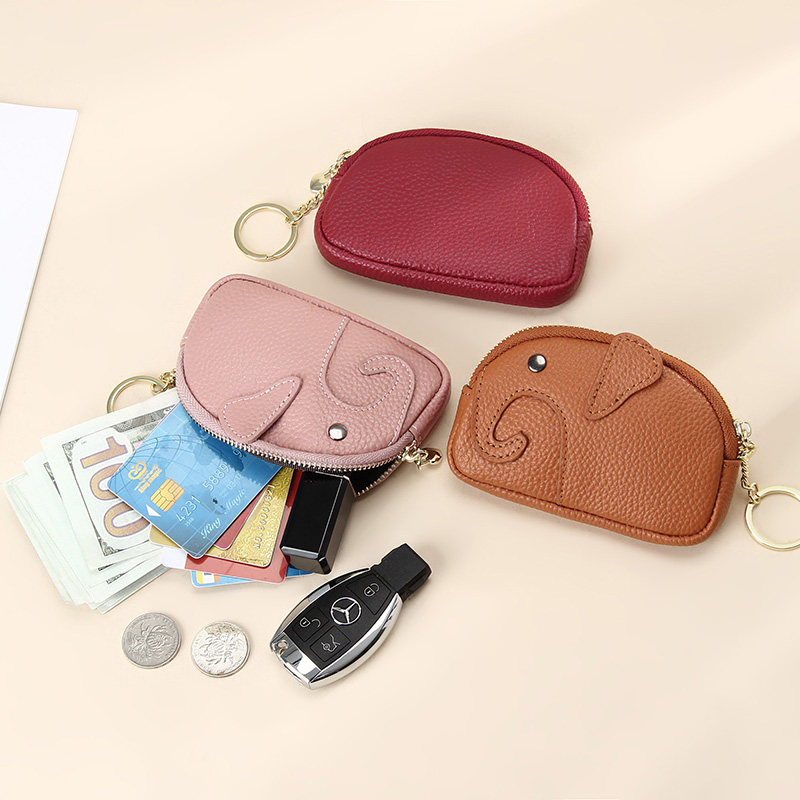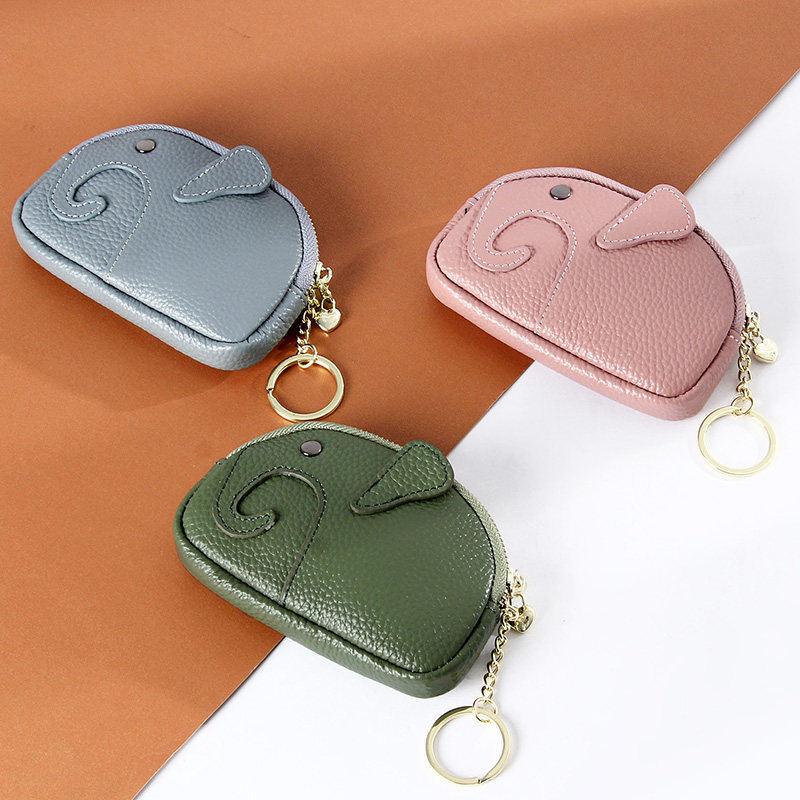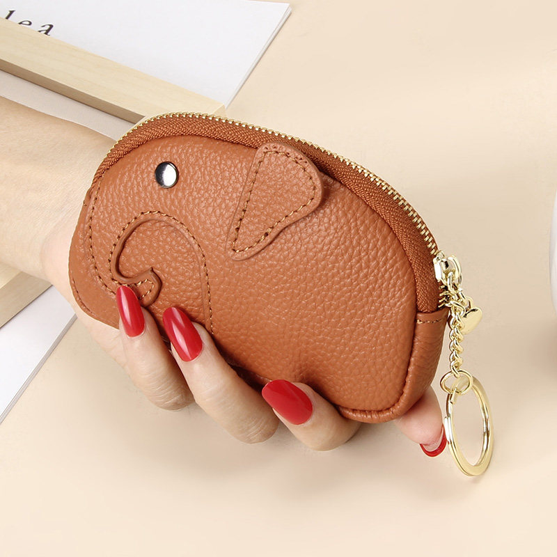 Leather Elephant Small Wallet Women's Coin Purse Top Layer Leather Cute Western Style Multifunctional Keychain Coin Card Holder