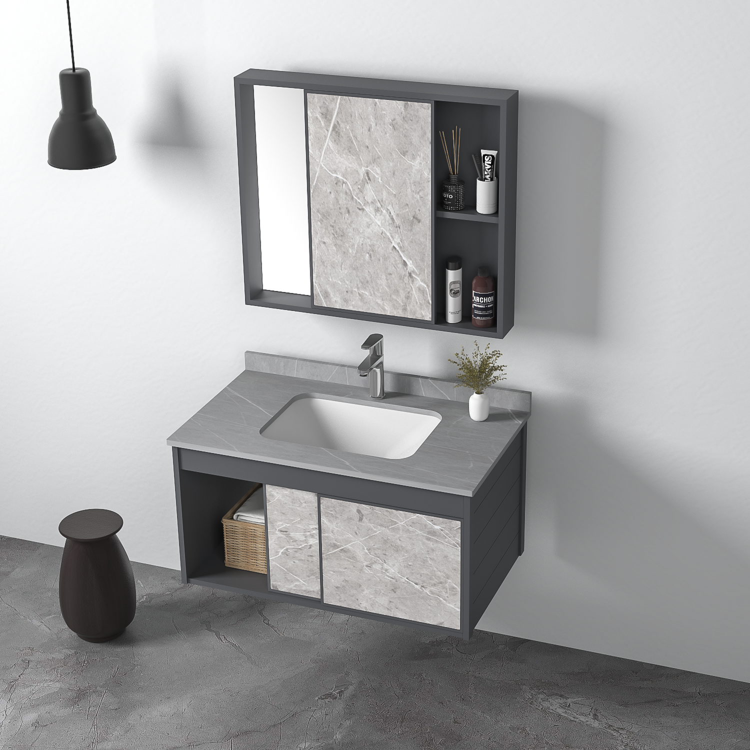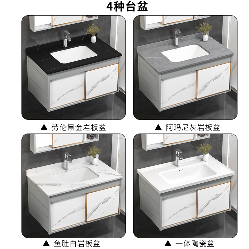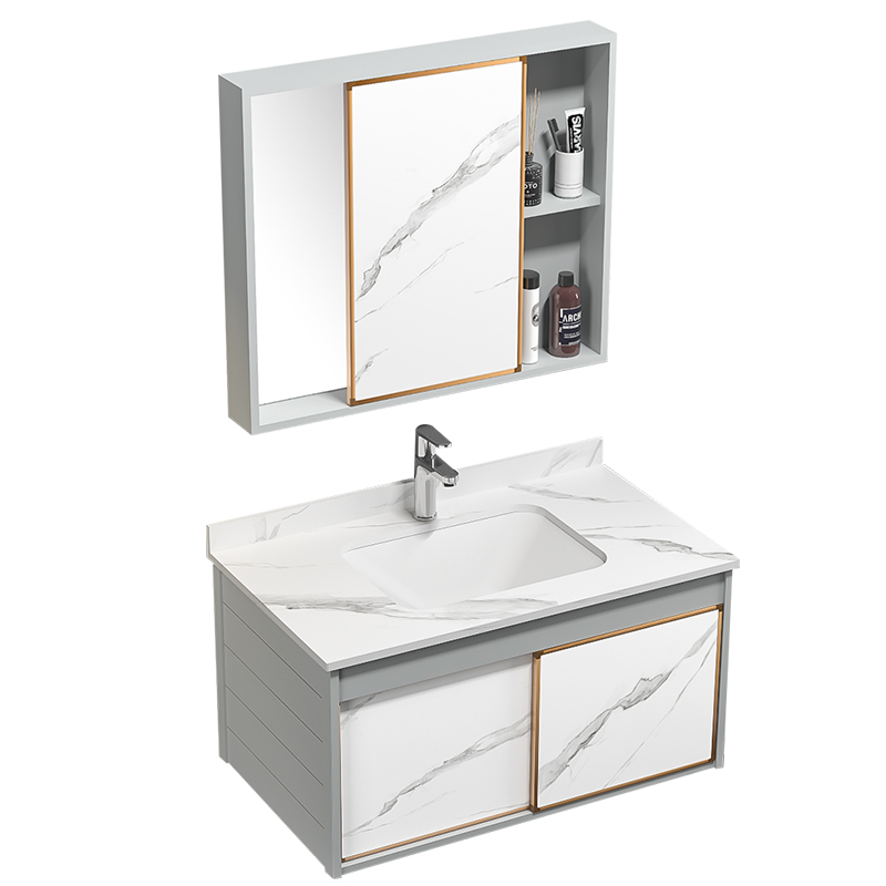 Feng Shui Mirror Cabinet Concealed Mirror Space Aluminum Bath Room Cabinet Combined Rock Board Integrated Basin Wash Basin Cabinet Washbasin