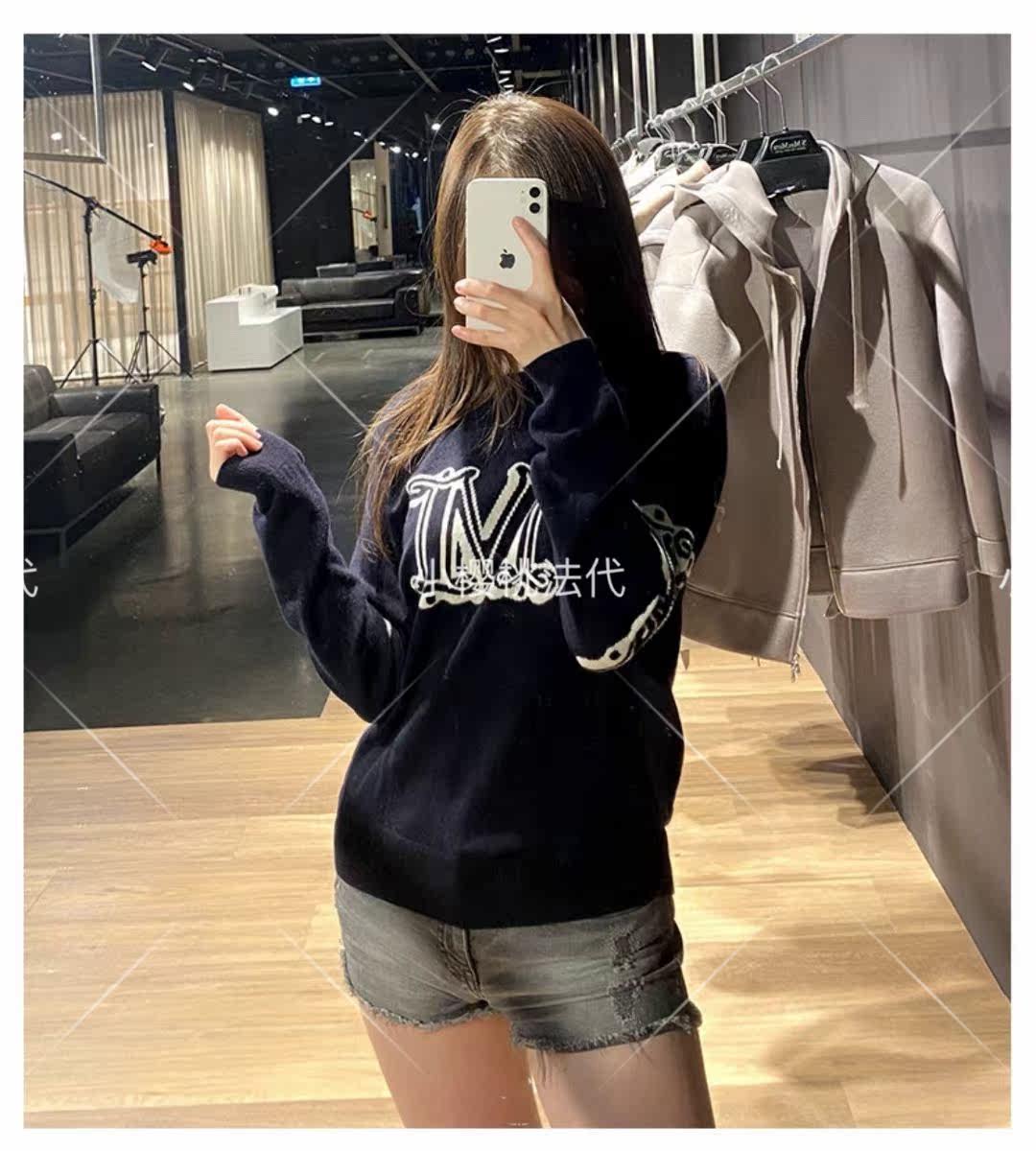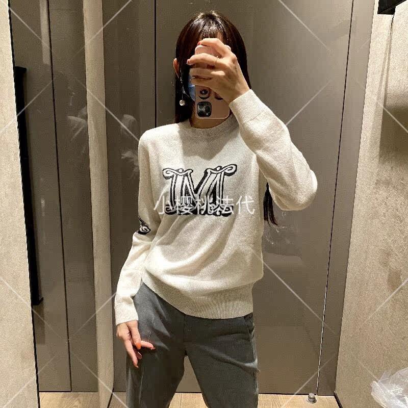 Maxmara21 autumn and winter style M letter profile cashmere knitted sweater round collar sleeve head loose 100 hitch