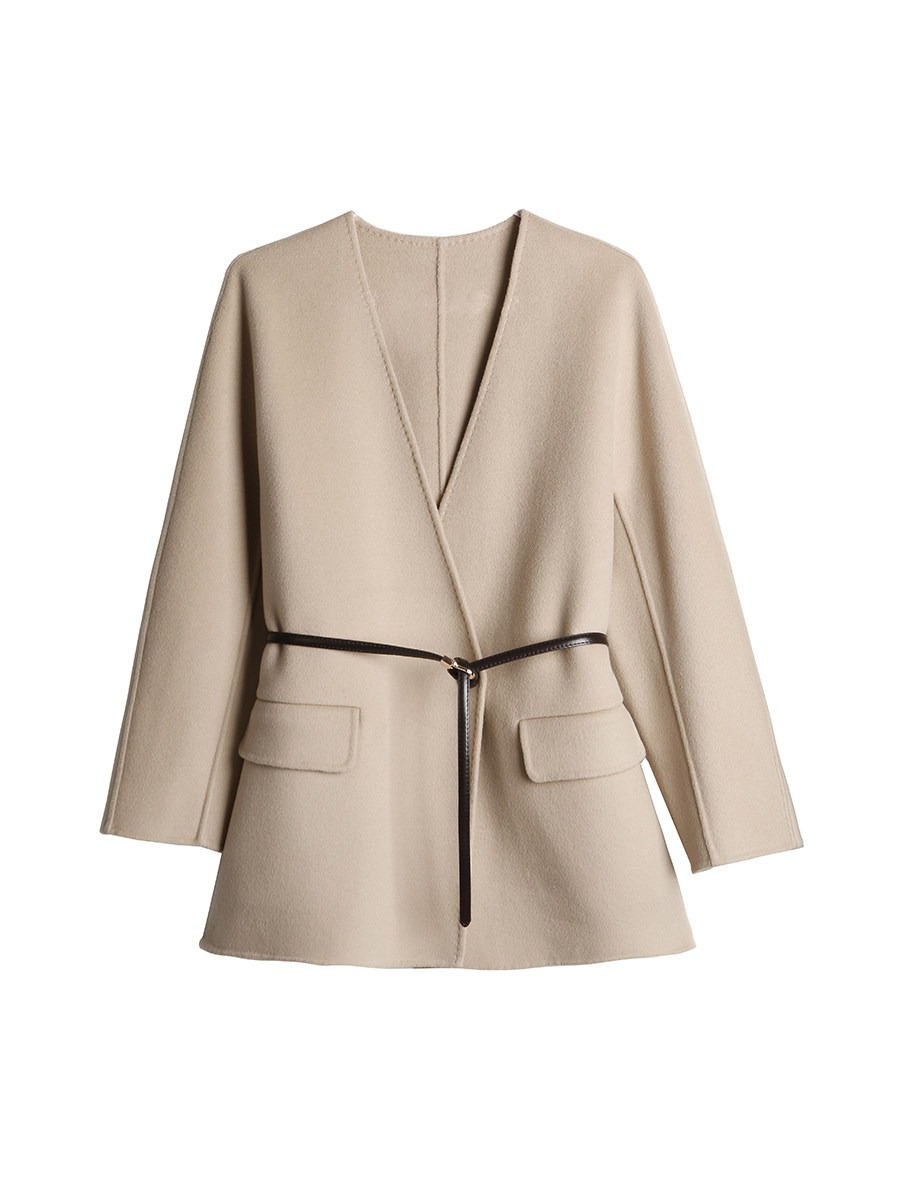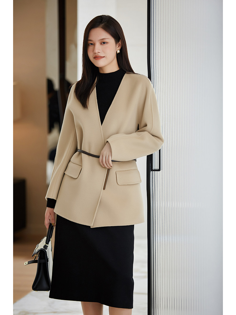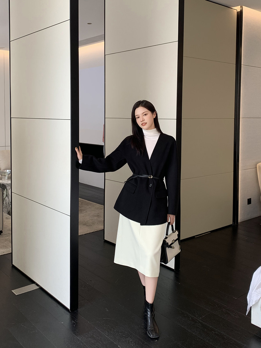 K (temperament) high branch of 100% wool belt with a button double - sided coat woman