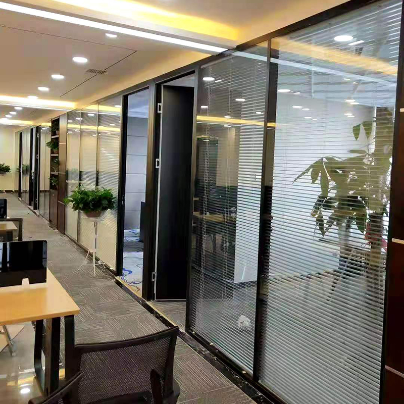 Glass partition wall office transparent double into tempered glass aluminum alloy shutters soundproof wall frosted high partition