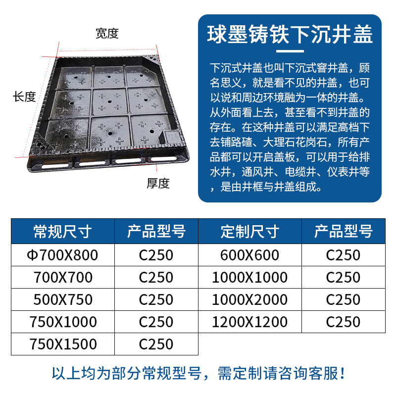 Ductile iron well lid square decorated laid brick sinking type manhole cover round invisible streetlight weak power manhole cover