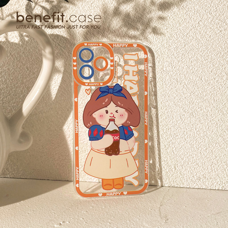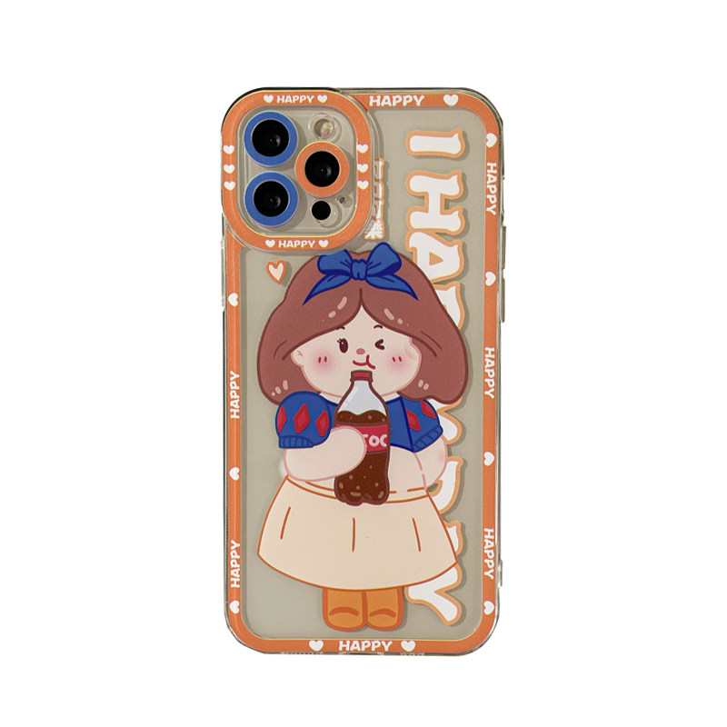 Benefit Cartoon Coke Girl applies Apple 13promax anti-fall mobile phone protection shell iphone12mini protective sleeve xsmax full package xr transparent 8p