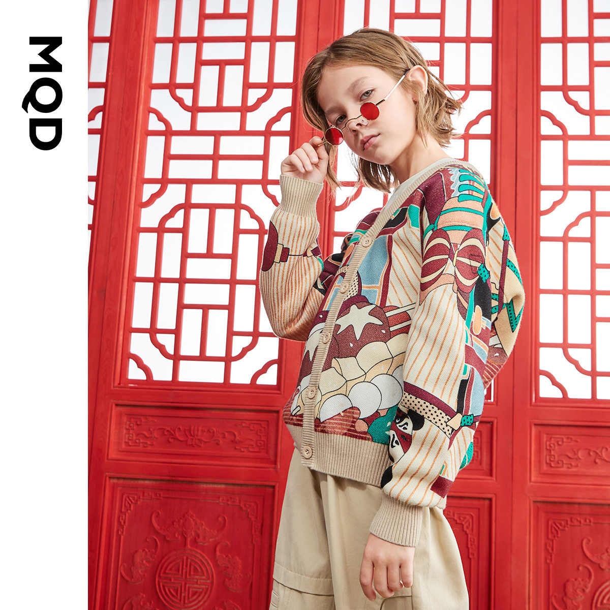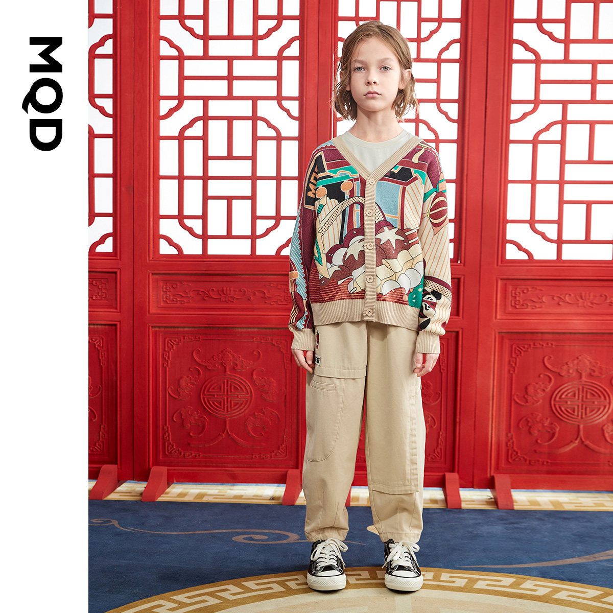 (State Wind Series) MQD Boy Clothing Boy Sweater 22 Spring New Children Knit Cardiovert Jacket National Tide Foreign Pie