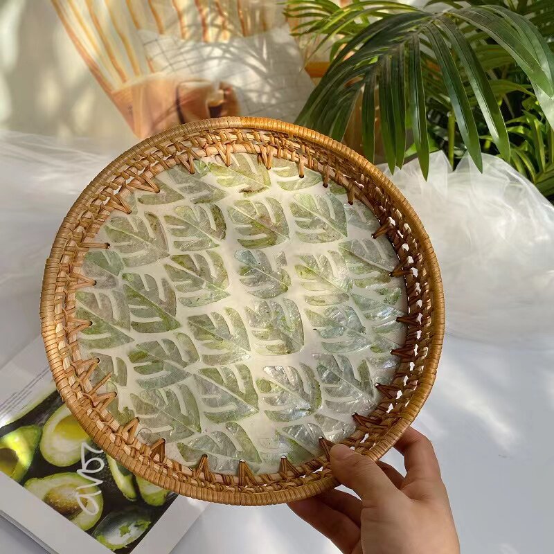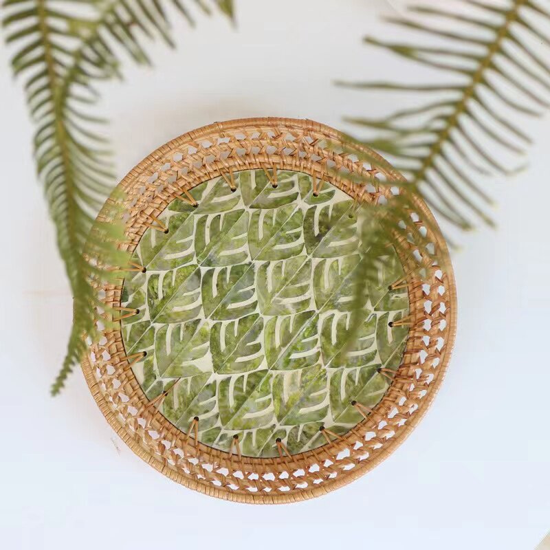 Green Leafs Bay Double Ear Fruit Basket Small Green Leafy Bay Double Ear Fruit Basket Large Green Leaf Bay Hollowed-out Fruit Basket Black Bottom Flower Hollowed-out 25 * 5 Brown Bottom Flower Hollowed-out 25 * 5 Oval Hollowed-out Brown Flower Ceramic Pan Random an elliptical flower edge 38