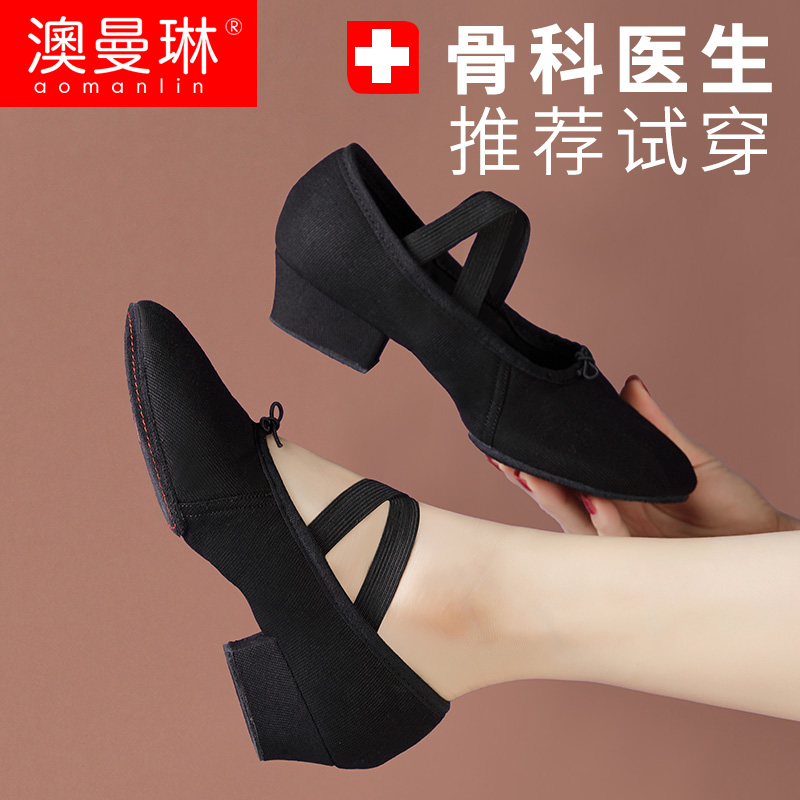 Australian Manlin Rehearsals Dancing Body Training Shoes Middle Heel Soft Bottom Comfort Ballet Square Dance Professional Teacher Shoes Woman