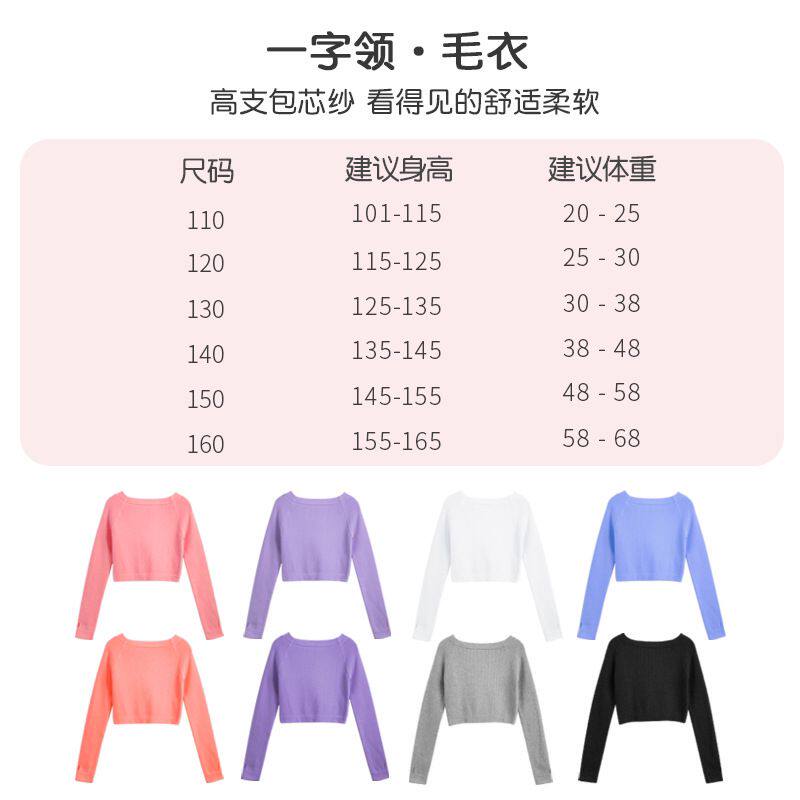 Children's dance clothes girls long-sleeved one-word collar knitted autumn and winter practice pullover sweater jacket ballet top