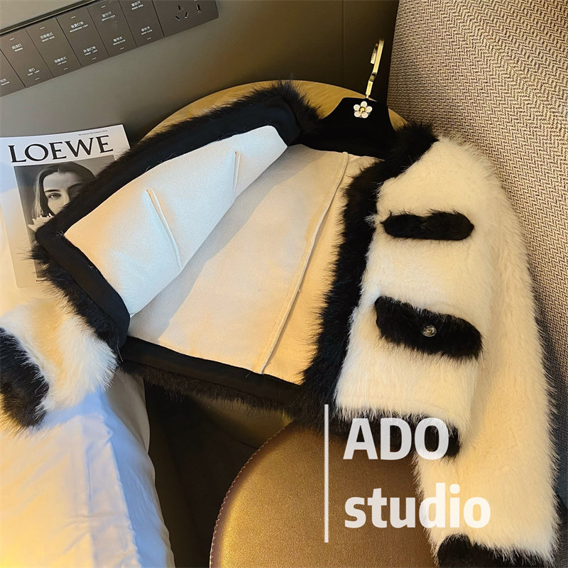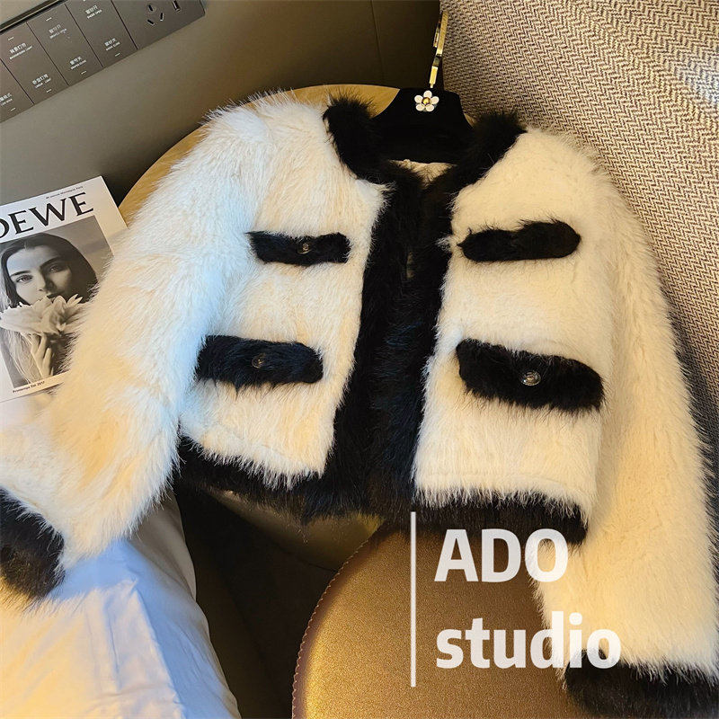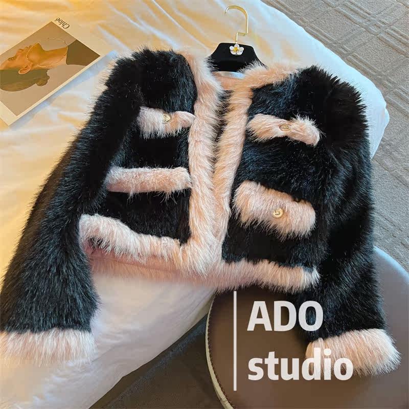 Collision Color Fur Coat Woman Imitation 2022 Spring Dress New Fox Hairy Net Red Temperament Famous Hime Fur Short blouses