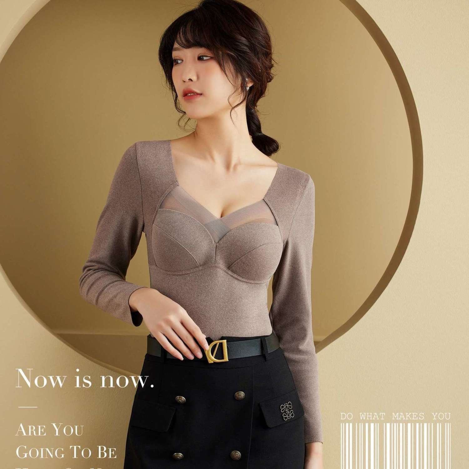 Spring Autumn Winter French German Velvet Heater Brushed Long Sleeve Top Low Neck Seamless Cup Bra Bottom Shirt Autumn Clothes
