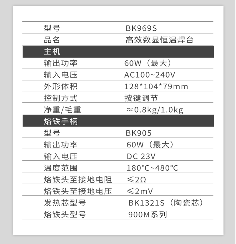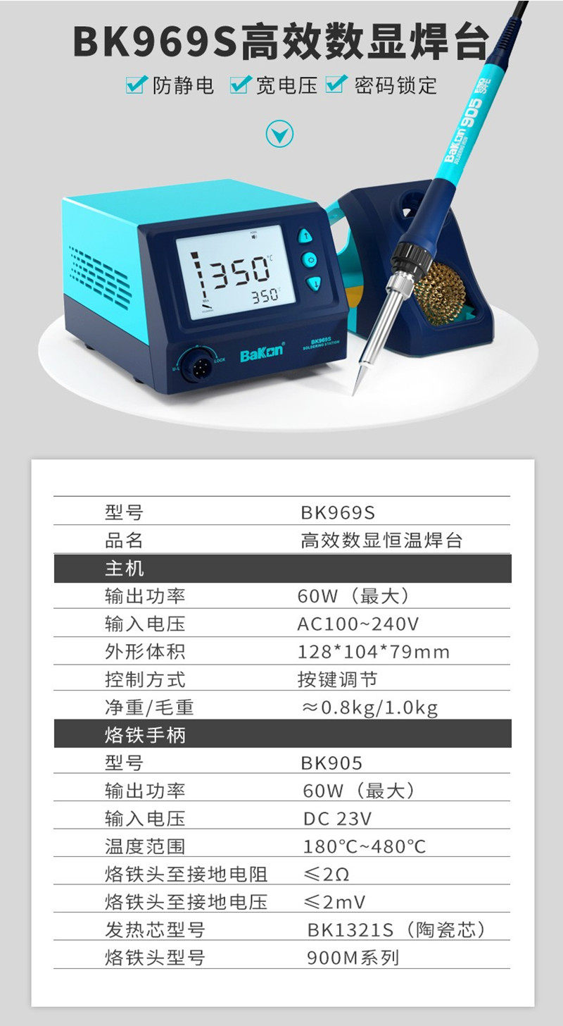 White light welding bench BK969S intelligent digital display thermotemperature electric soldering iron 60W welding repair tool 969S welding table