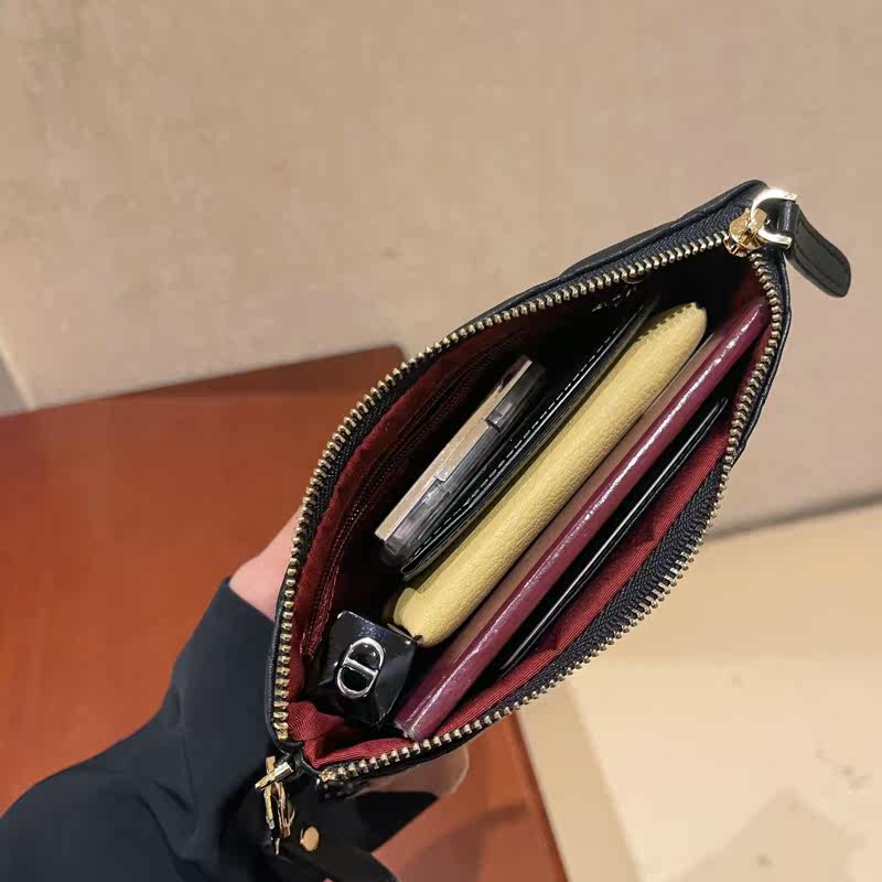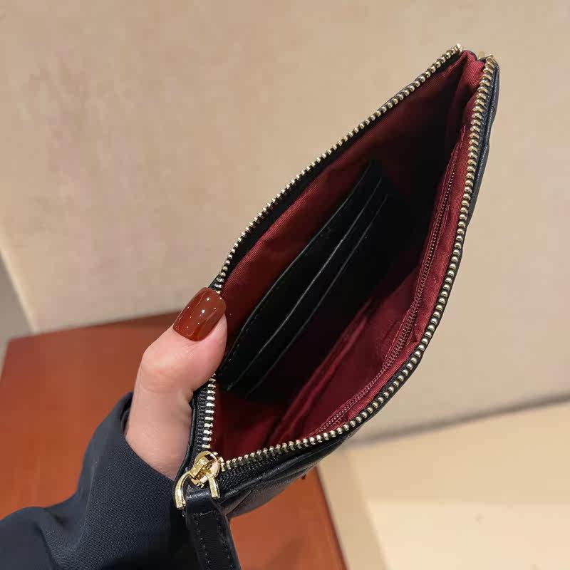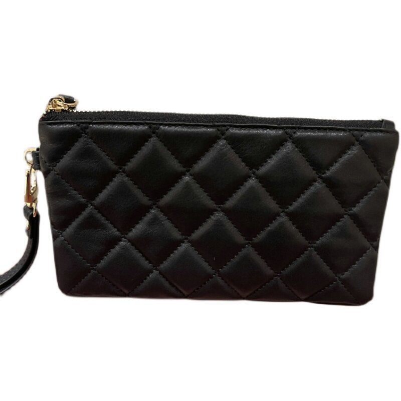 Leather cosmetic bag women's large-capacity first layer cowhide zipper mobile phone bag handbag rhombus small square bag storage coin purse