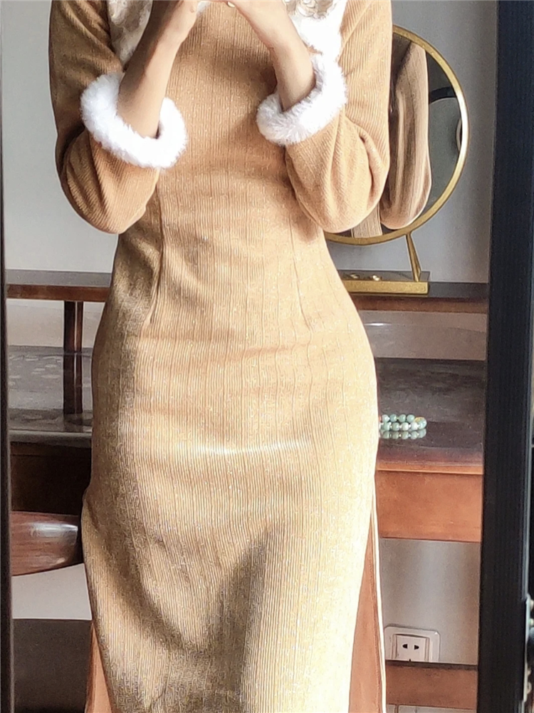 North Shore Cheongsam Women's Winter Thickened Winter Clothes 2022 New Autumn and Winter Long-sleeved Fur Collar Improved Dress