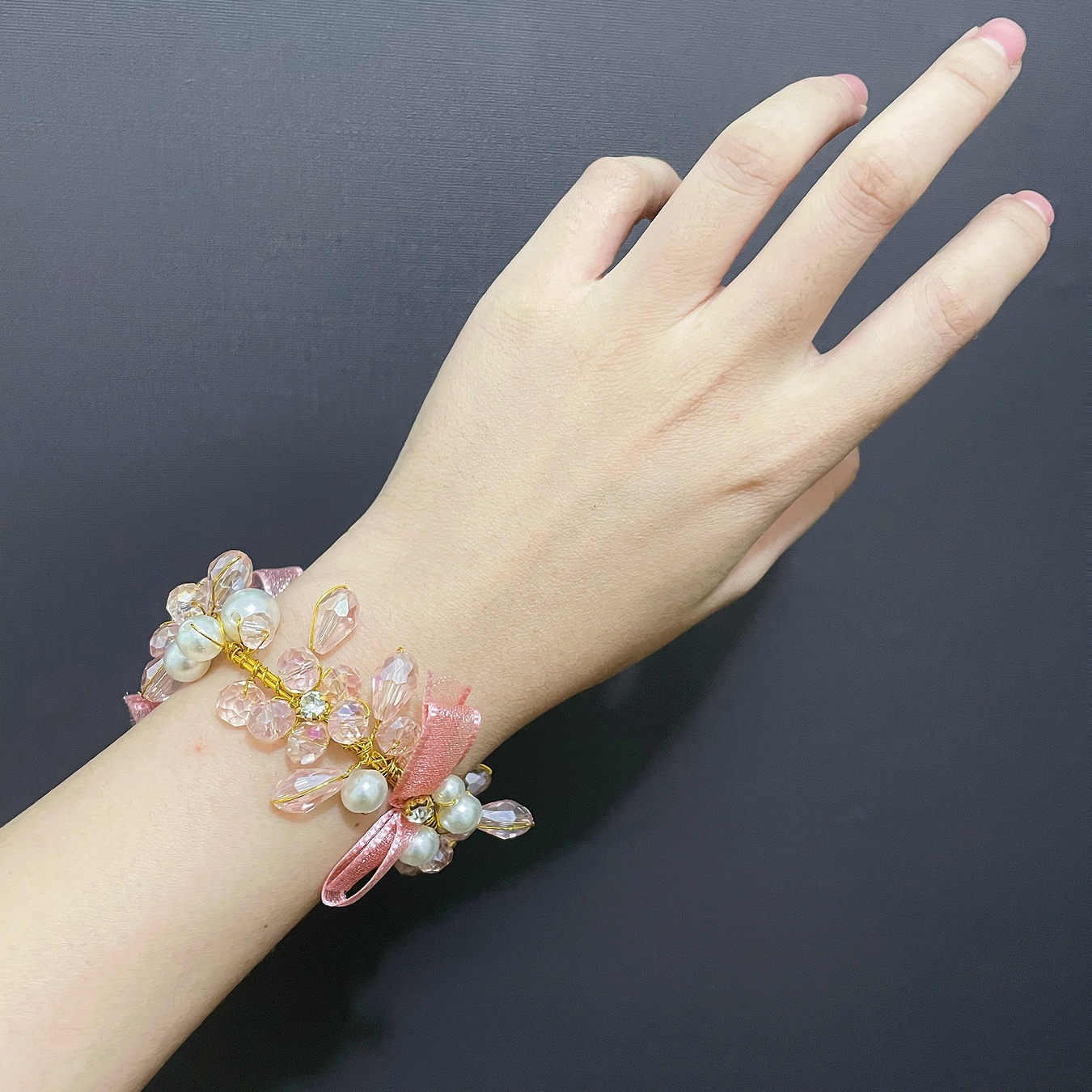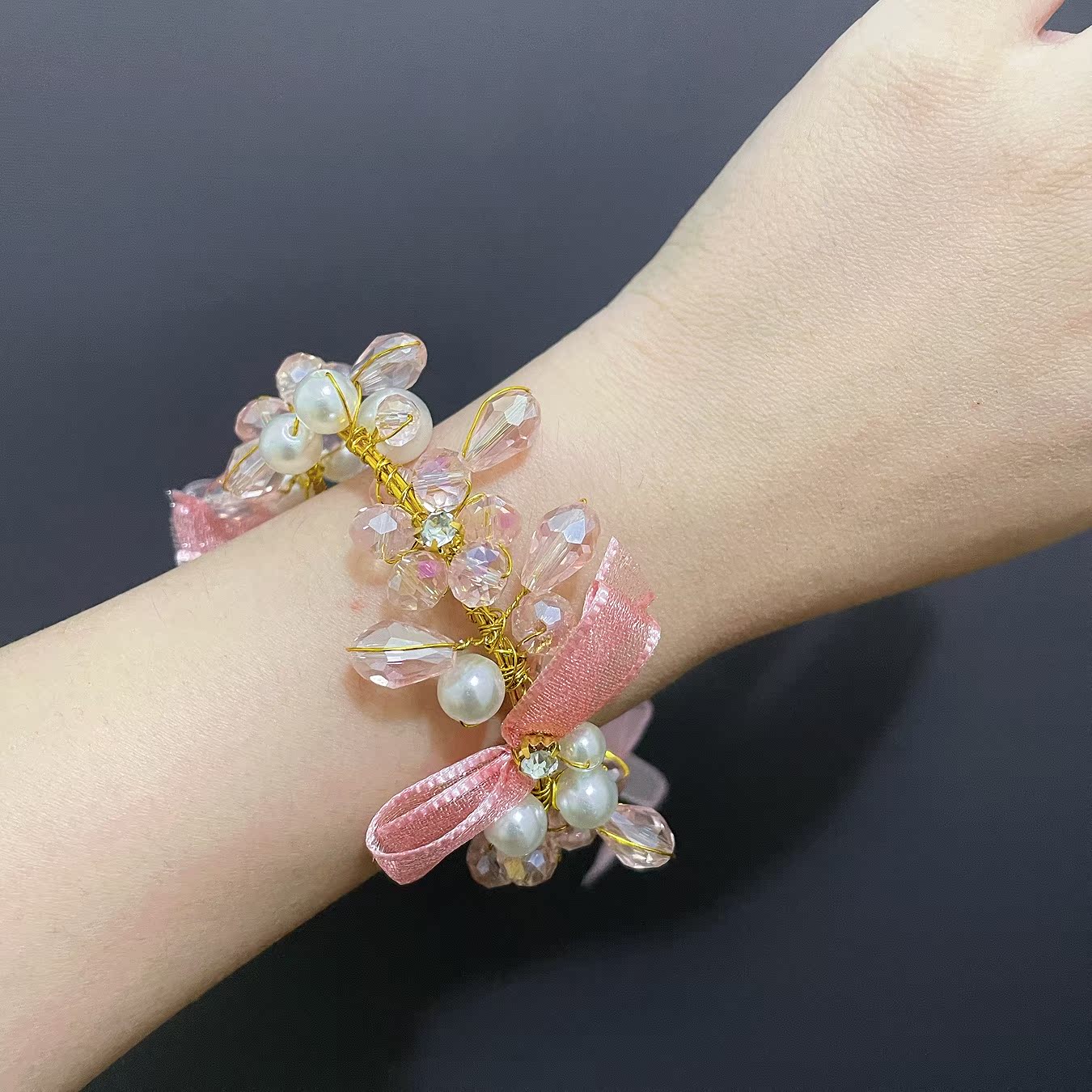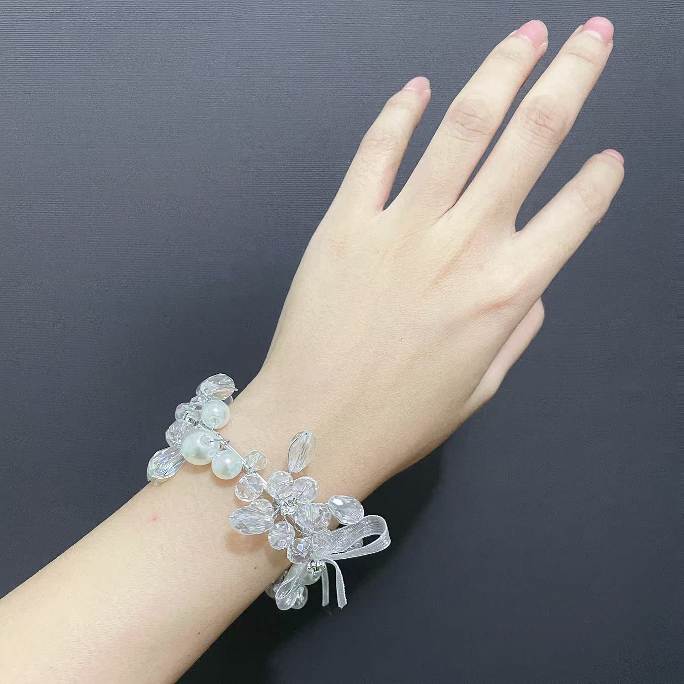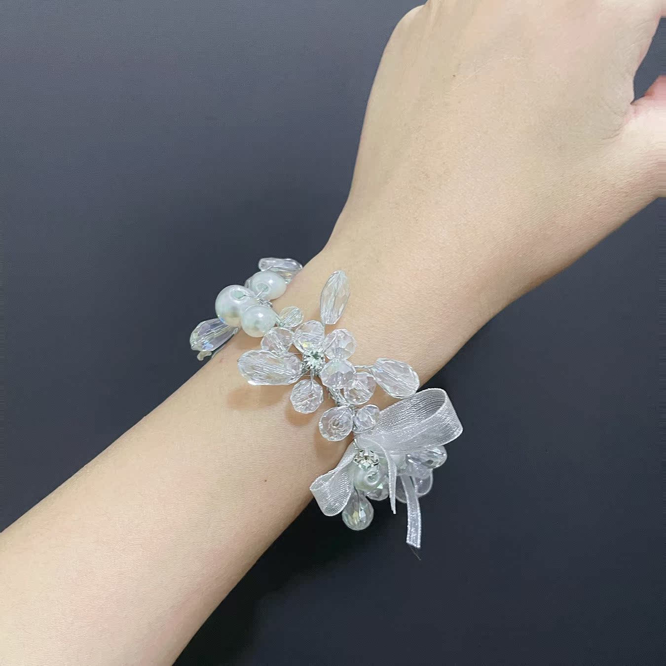 Crystal Wrist Flower Knot Wedding Bridesmaid Group Wine Banquet Merry White Pink Bridal Hand Flower Stage Bracelet