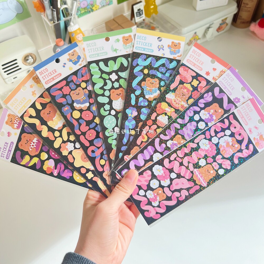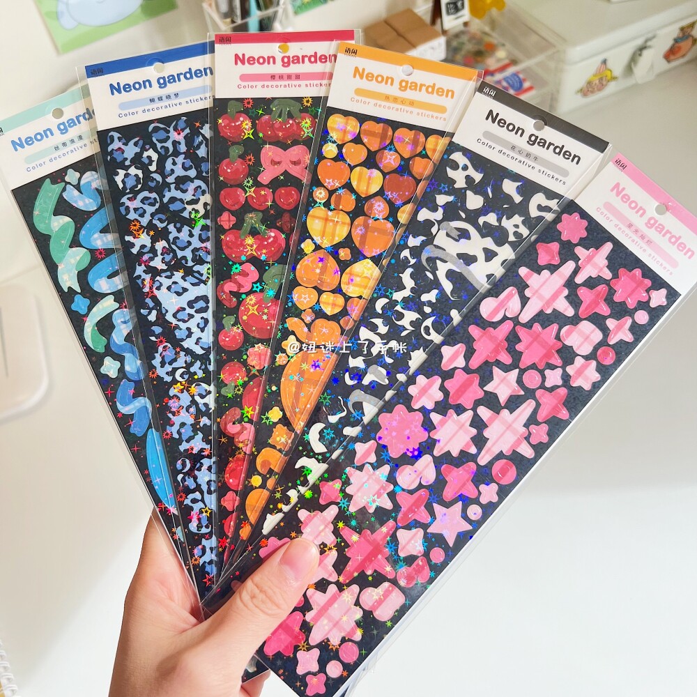 Goka small card sticker in Korean flash laser rose scene handbook photo ribbon letter sticker