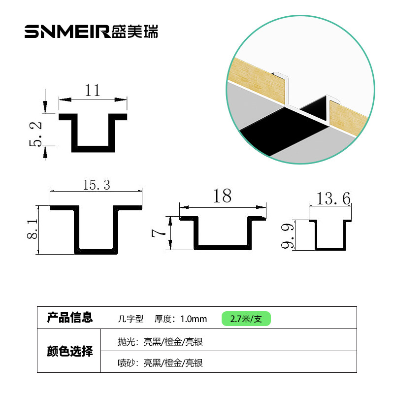 Aluminum alloy several-shaped decorative strip living room ceiling line metal holding strip background wall ceramic tile edge strip