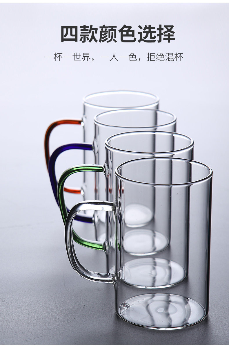 Home hospitality glass-cup heat resistant with handle drinking water cup One person one color tea cup cool water cup high temperature resistant water glass