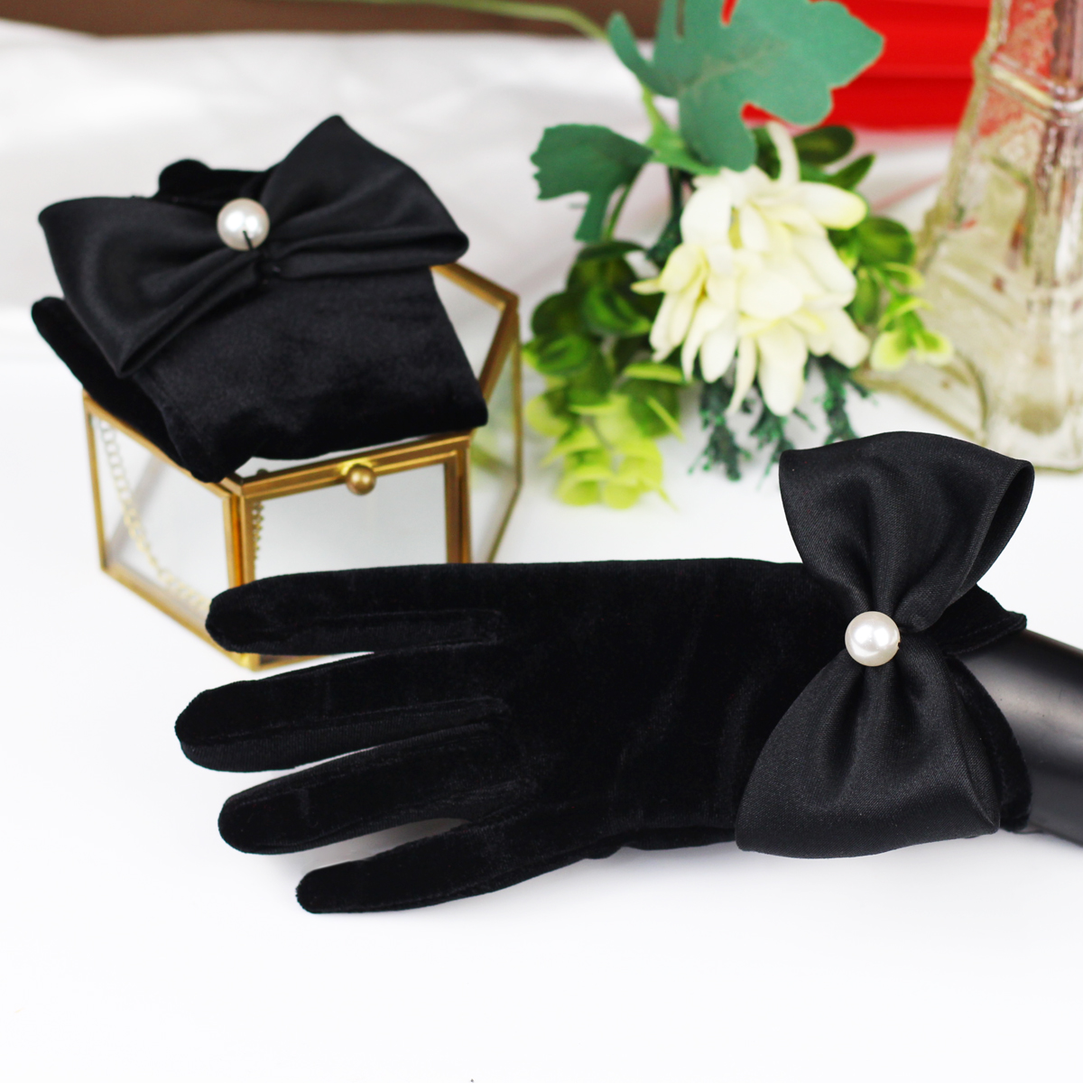 Herben Wind Retro Black Velvet Glove Minimalist Wedding Dresses Dresses With Makeup Performance Photo Props WG030-Taobao