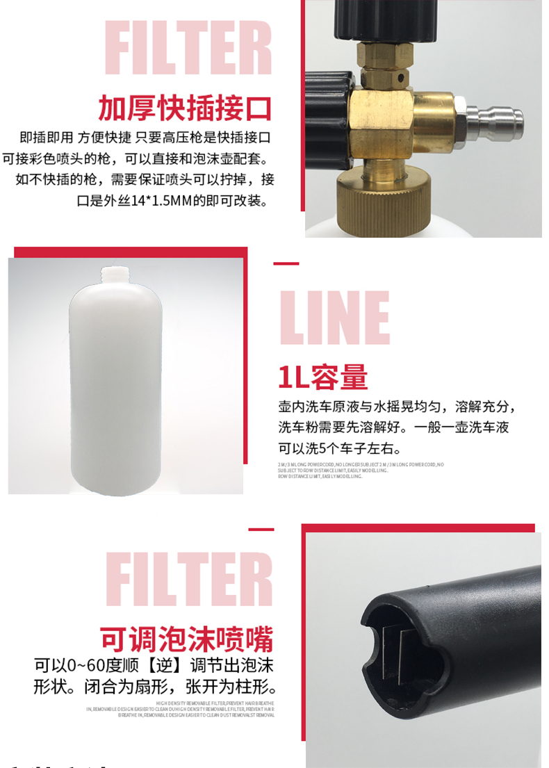 L-A Foam Pot L-A High Pressure Foam Pot Connector Spare Empty Pot 1L (1 pc) Spare Empty Pot 1L (2 pcs) Outer Wire M14 (Protruding Mouth) Short Gun Set (Matching 2 Outer Wire M14