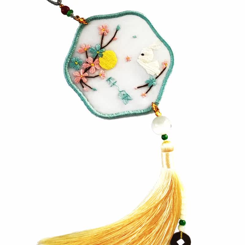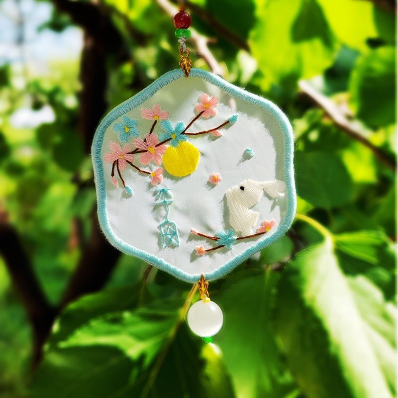 Hand embroidered double-sided embroidered diy material bag self-embroidered making gift moon Rabbit Christmas pendant with boyfriend