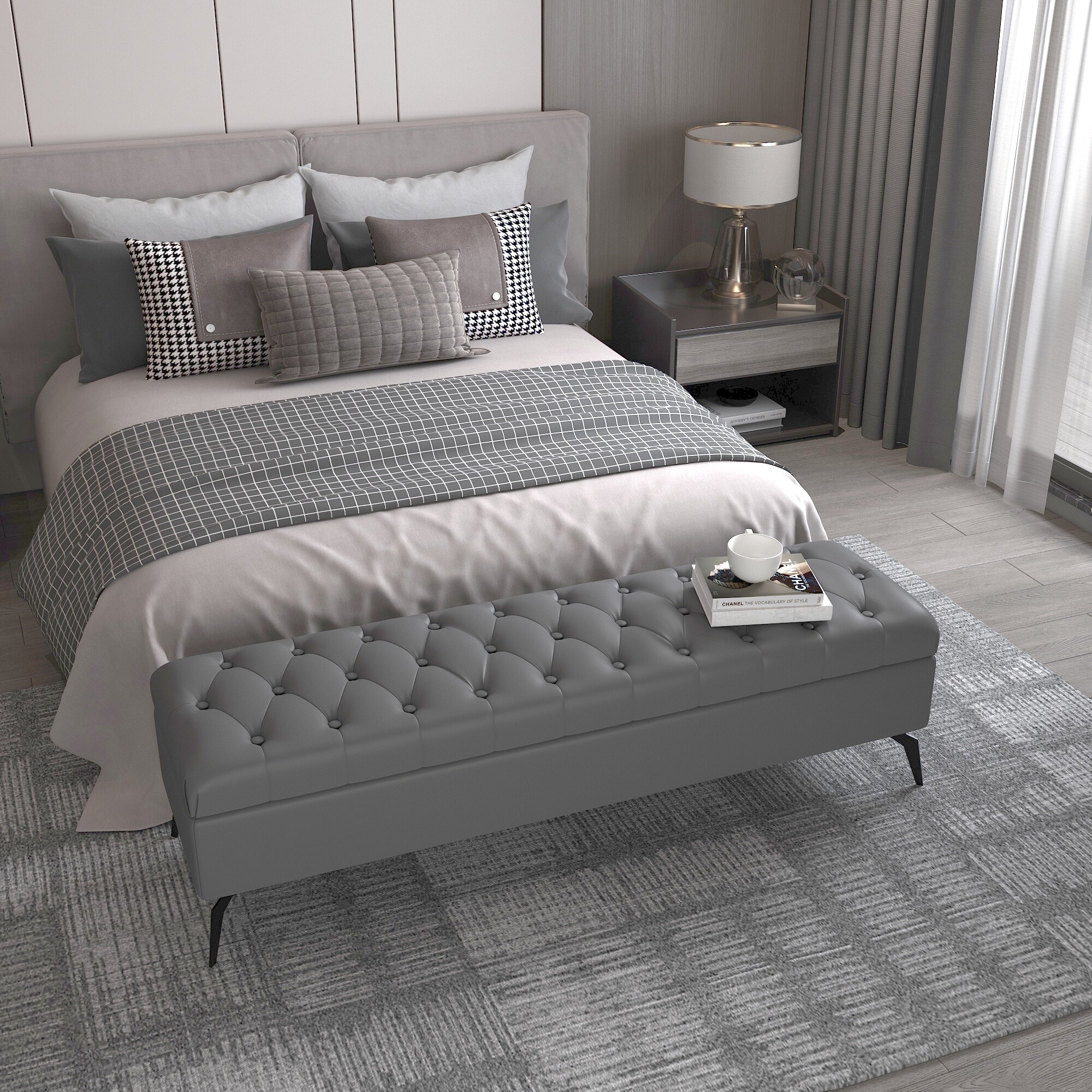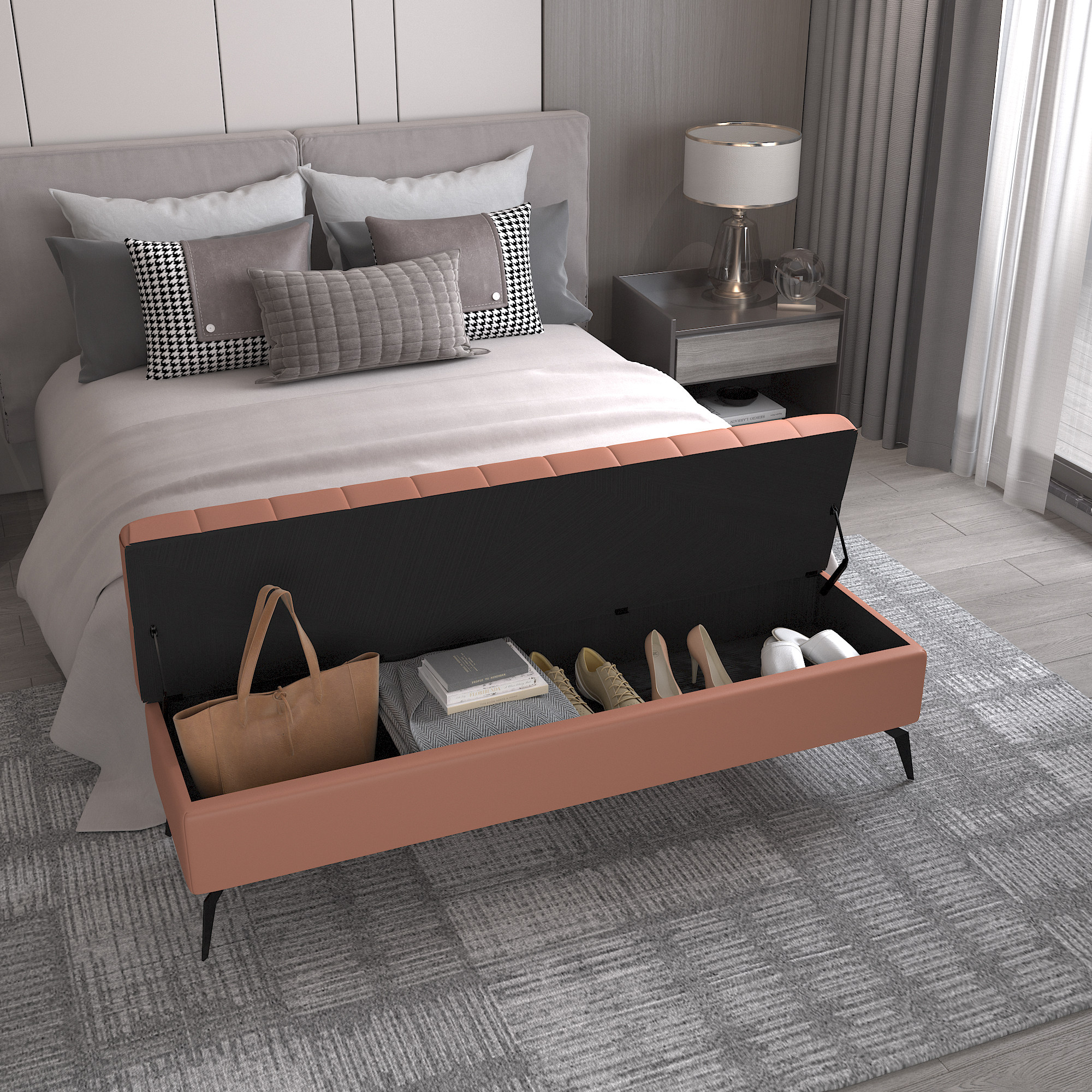 Light luxury Nordic simple wear and change shoes stool leather door clothing store storage long small sofa bedroom bed end long stool
