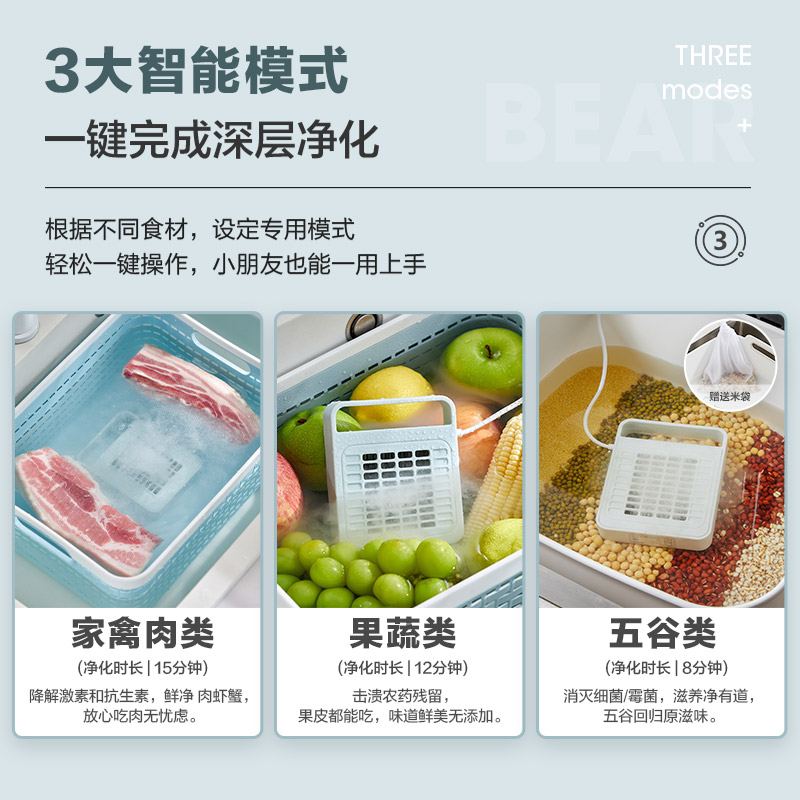Small Bear Fruit And Vegetable Disinfection Purifier Household Negative Ion Net Food Machine Wash Vegetable Machine Fully Automatic Cleaner Hanging Wall Food