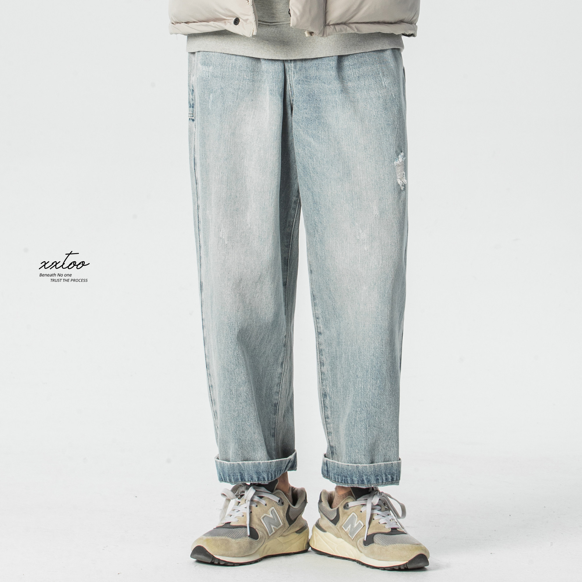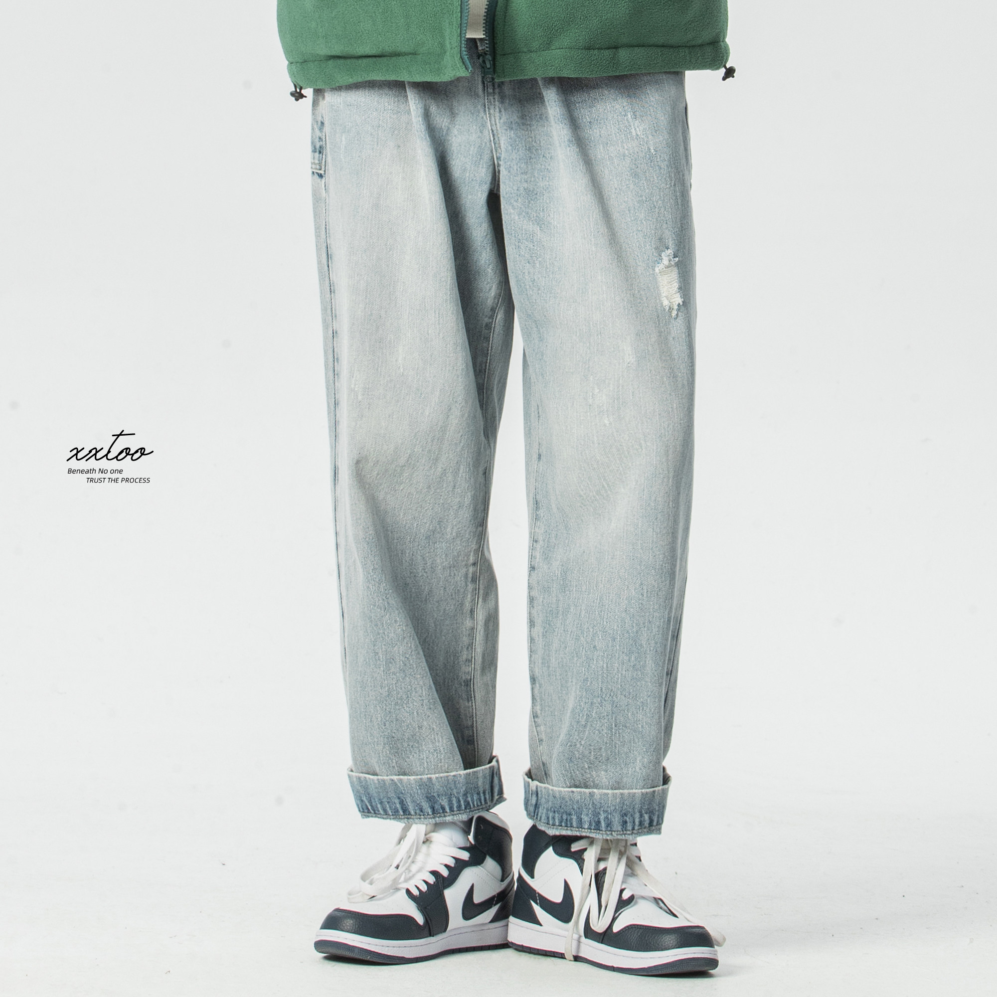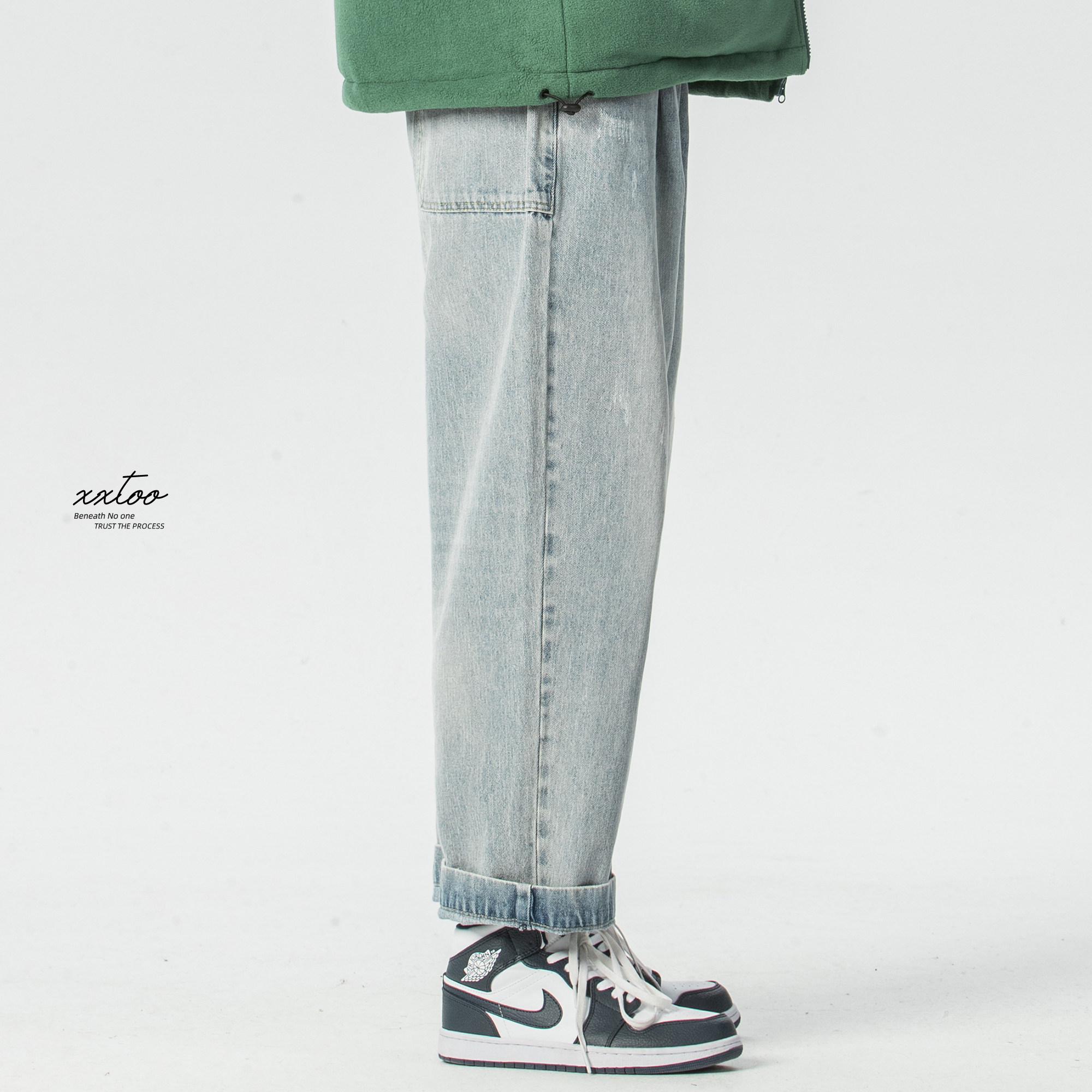 XXTOO Japanese retro heavy wash light color 2022 spring and autumn trend casual loose straight jeans trousers men