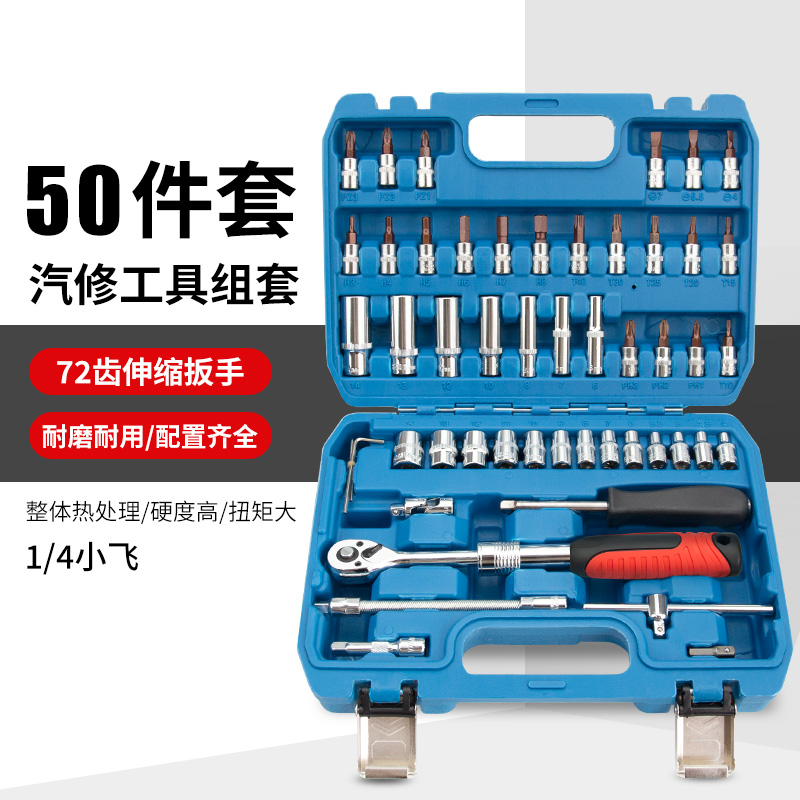 Bunger 50 pieces 1 4-inch sleeve wrench Steam-protection Home Machine repair combined tool Preset type adjustable torque wrench telescopic ratchet