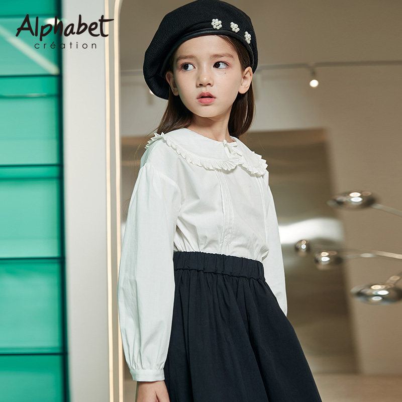 2022 spring and autumn new girls' shirts, medium and large children's clothing, long-sleeved doll-collar cotton tops, foreign fashionable shirts