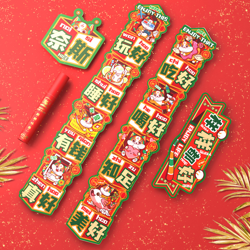 2023 Spring Festival couplets home creative new year cute high-end personality decoration door blessing word door stickers cartoon Spring Festival couplets