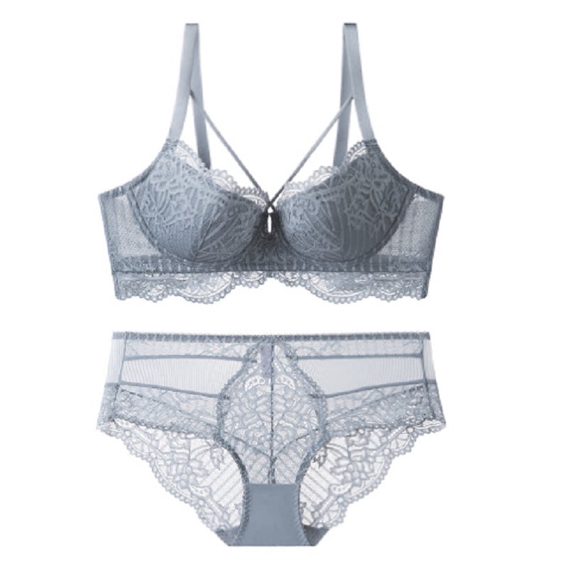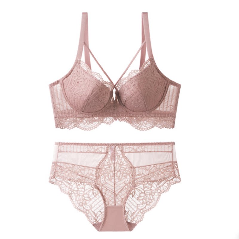 Fan-style white sexy lingerie female big chest for small gathering anti-sagging upper toppyour pink lace dress bra suit
