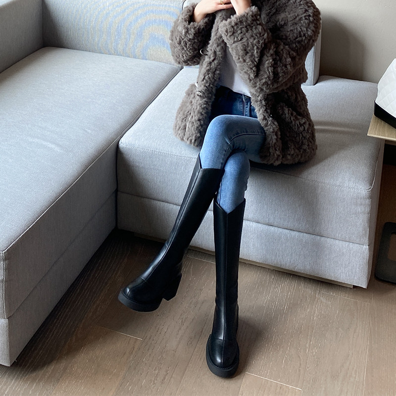 Fat Mm Display Slim Long Barrel Boot Female V Mouth Coarse Leg Riding Boots High Heel Long Boots With Legs Large Cylinder Surrounding High Cylinder Boots