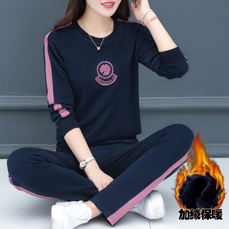 Sportswear Suit Women Winter 2022 New Middle Aged Mom Running Fitness Loose Casual Pure Cotton Two Sets