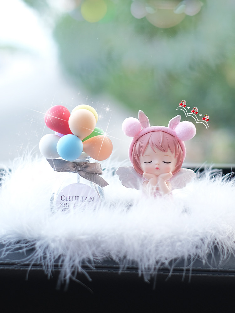 A pink hair band Annie baby Pink and white fruit perfume B hair ball with Annie baby Pink and white fruit perfume powder hair band Annie baby Pearl feather cushion hair ball with Annie baby Pearl feather cushion E powder