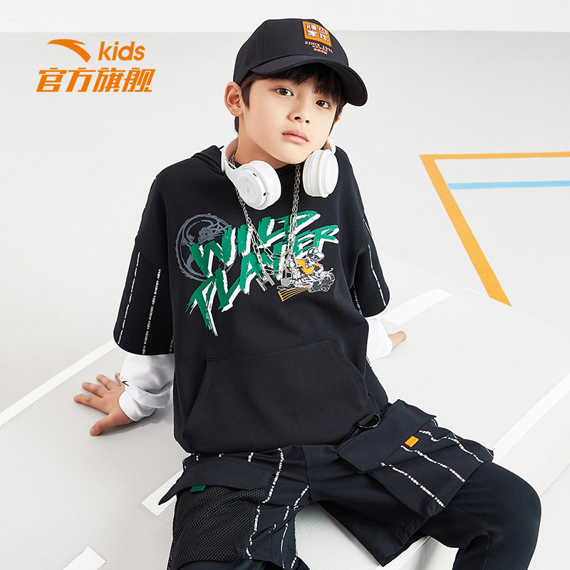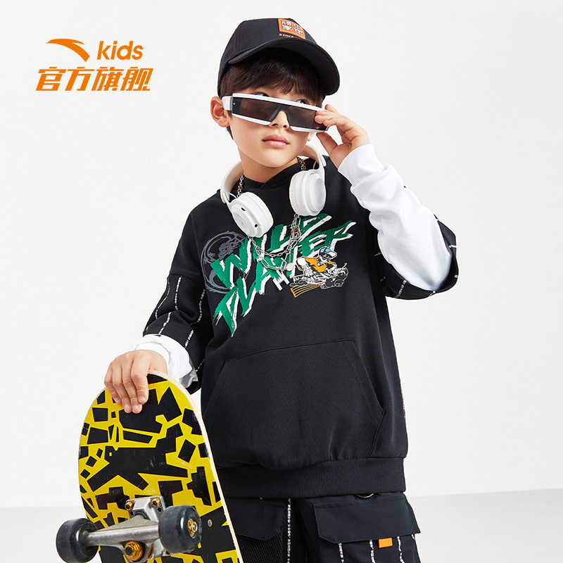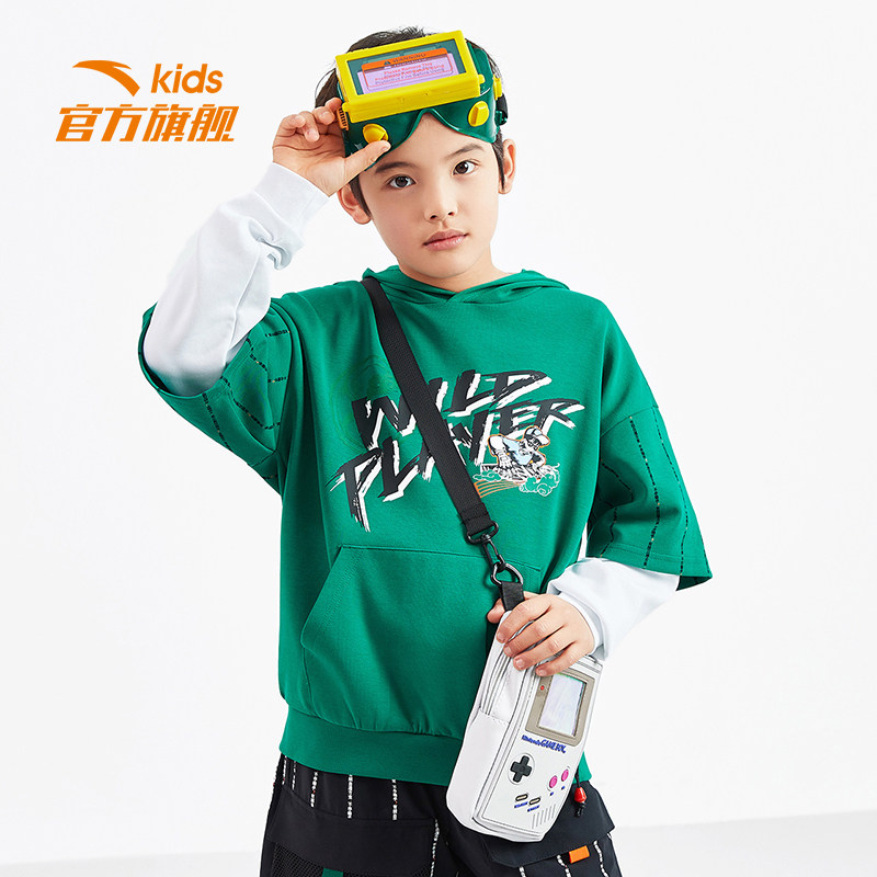 Teen naughty) Antread children's sweatshirt boy 2022 Spring loaded with new big children's even hat sports fake two blouses