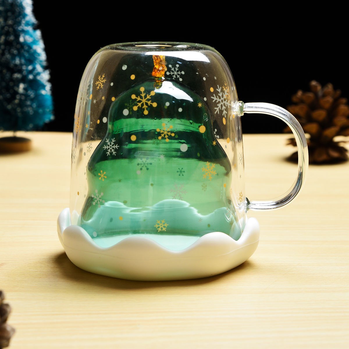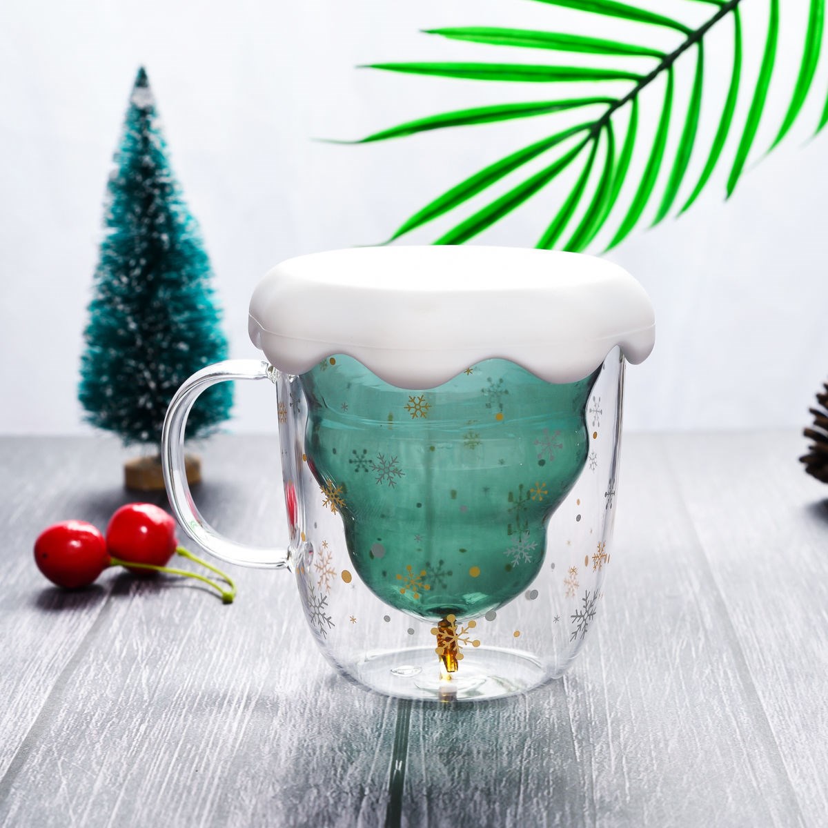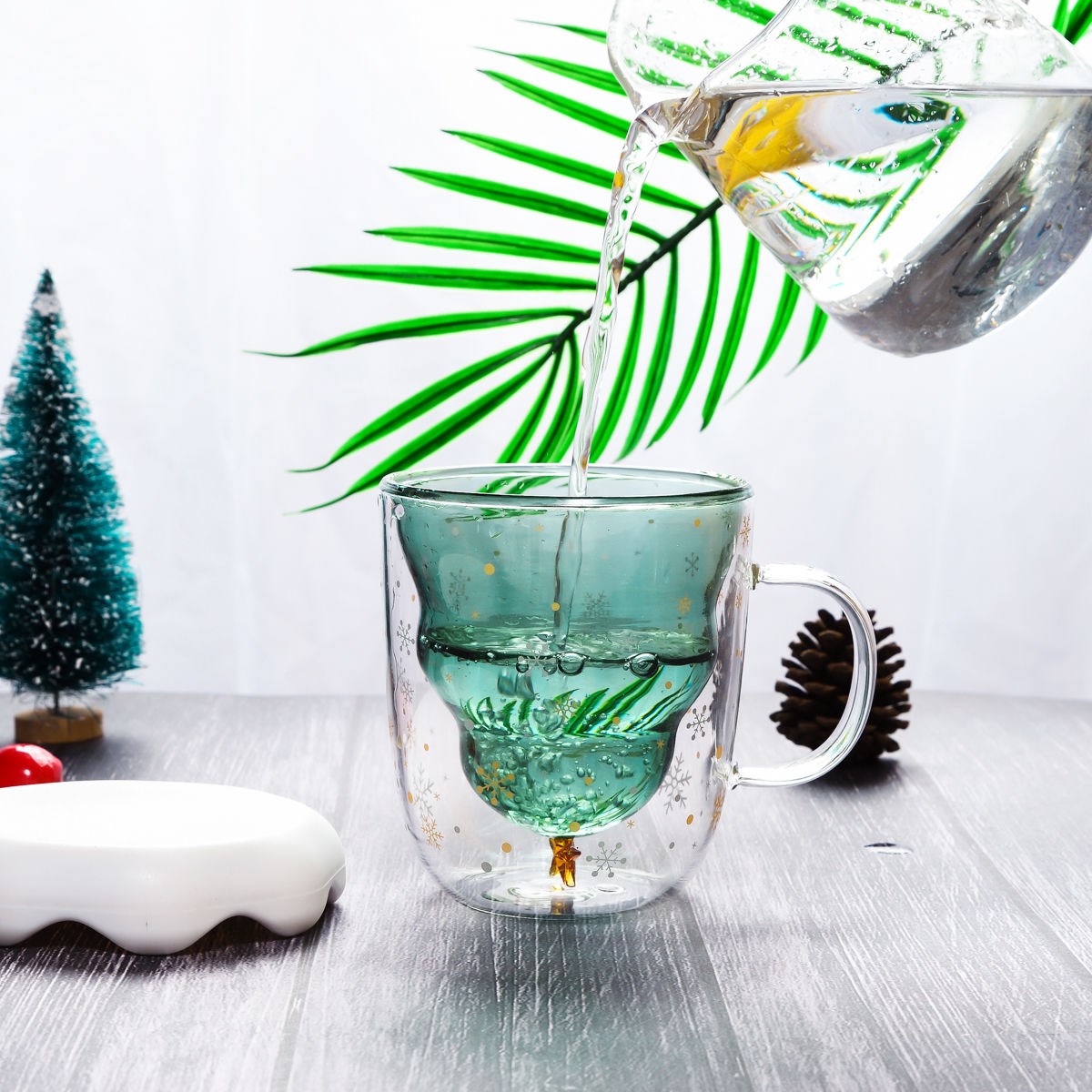 Christmas tree glass creative star wish cup high temperature mug custom water cup double layer l gift cup
