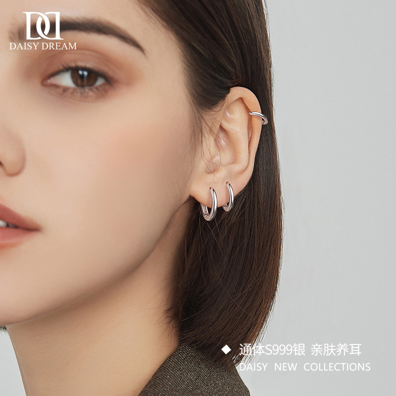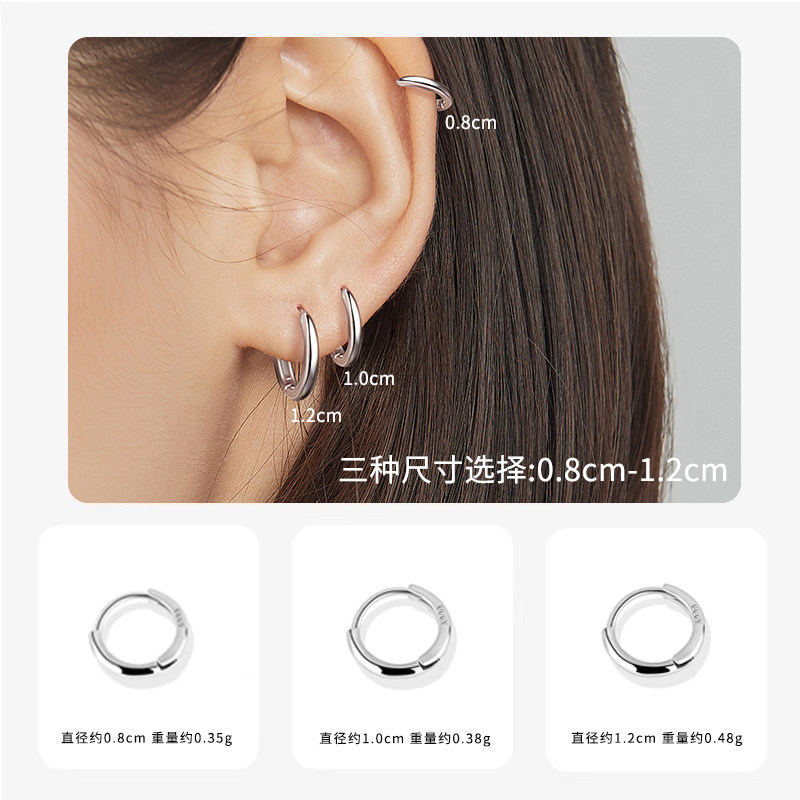 999 sterling silver earrings women's circles high-end sense ins wind ear bone nails sleeping without removing ear piercing ear needle ear ring ear decoration