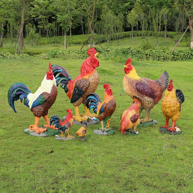 Outdoor Landscaping Emulation Rooster Sculpture View Decoration Park Farm Fiberglass Hens Casual Farm Floor Pendulum