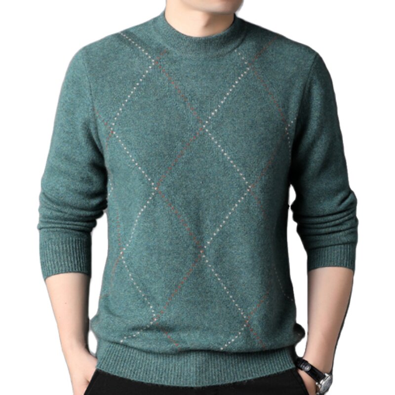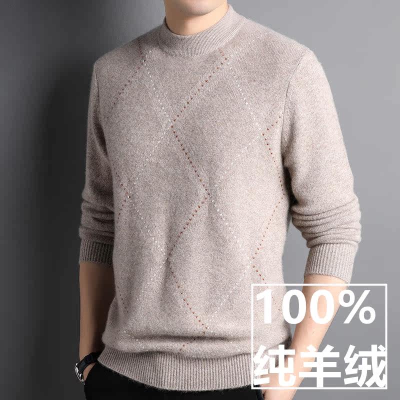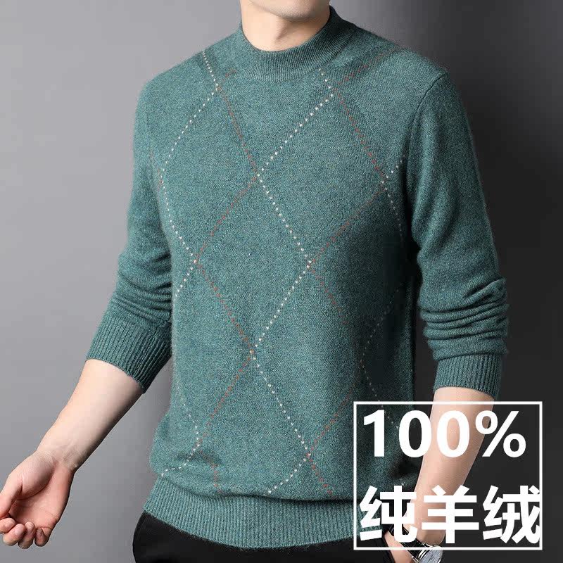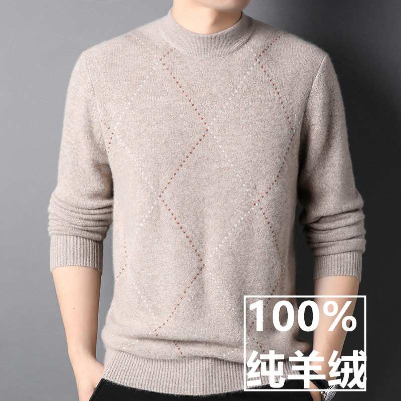 Winter 100 Pure Kashmir Wool Sweater Men Business Casual Round Collar Warm Jacquard Knit Undershirt Cashmere Cardiff